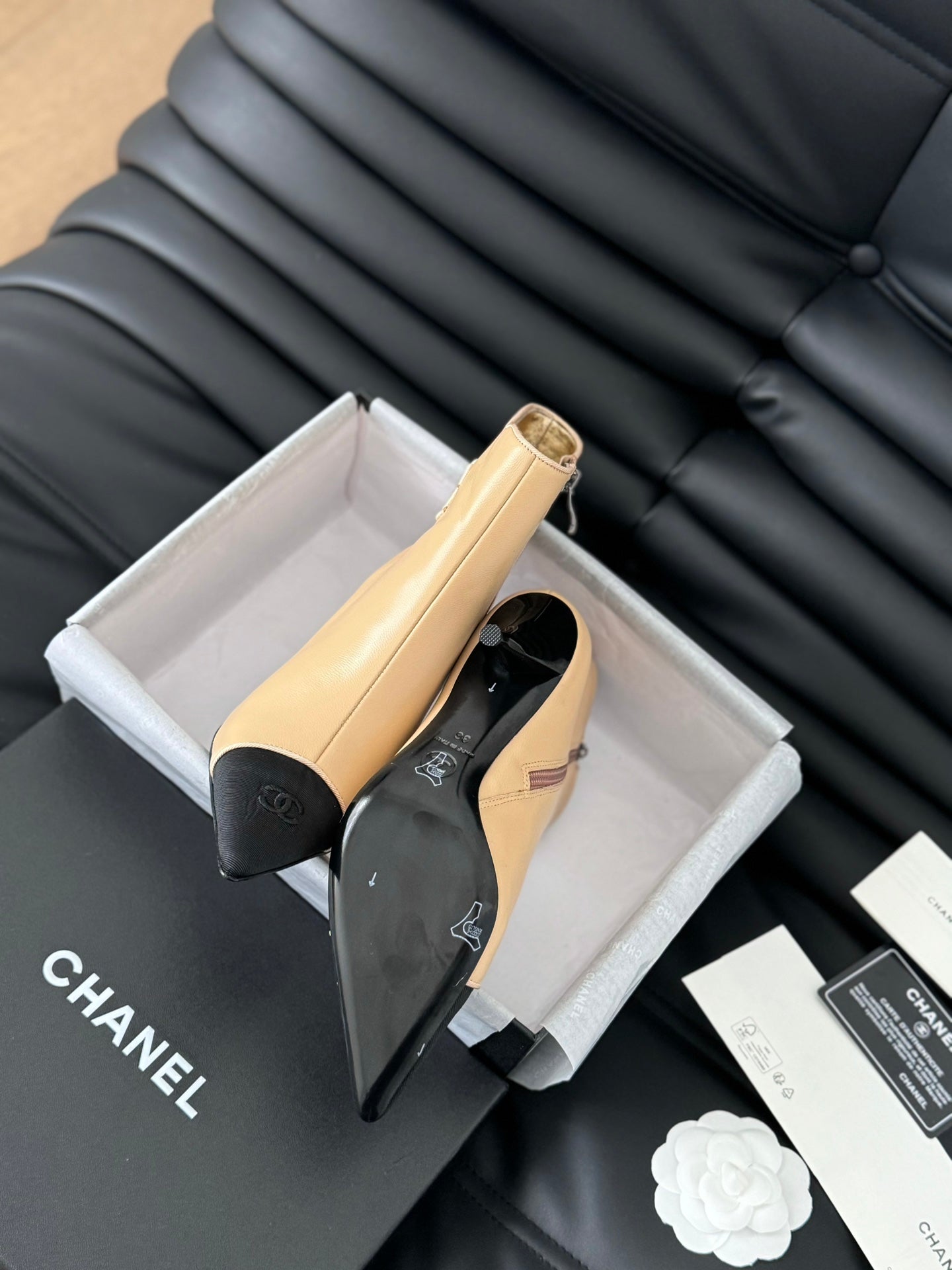 cc short boots 80 heel beige calfskin