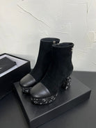 CC Short Boots 95mm In Black With Letters Printed Suede And Lambskin 949659