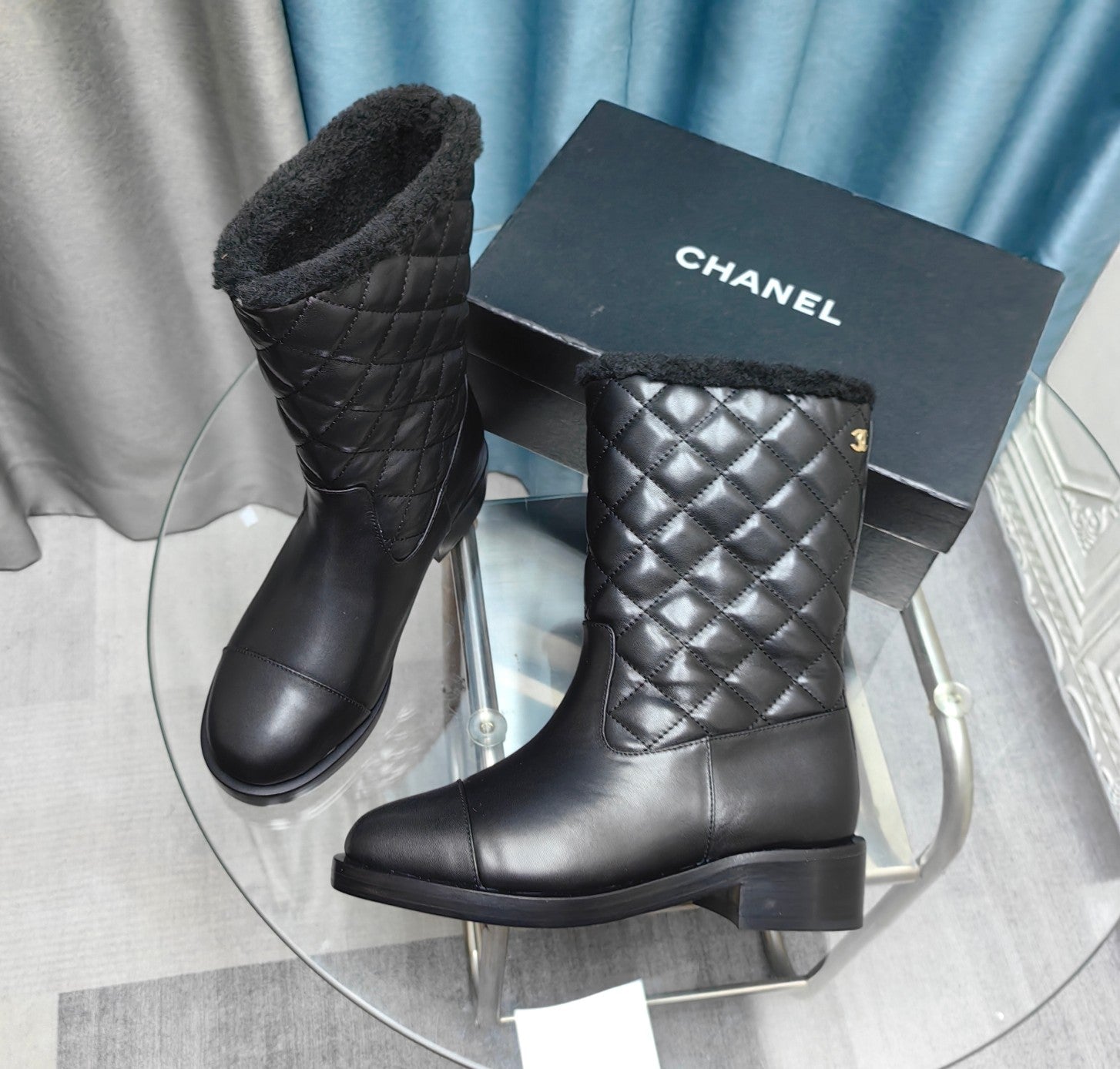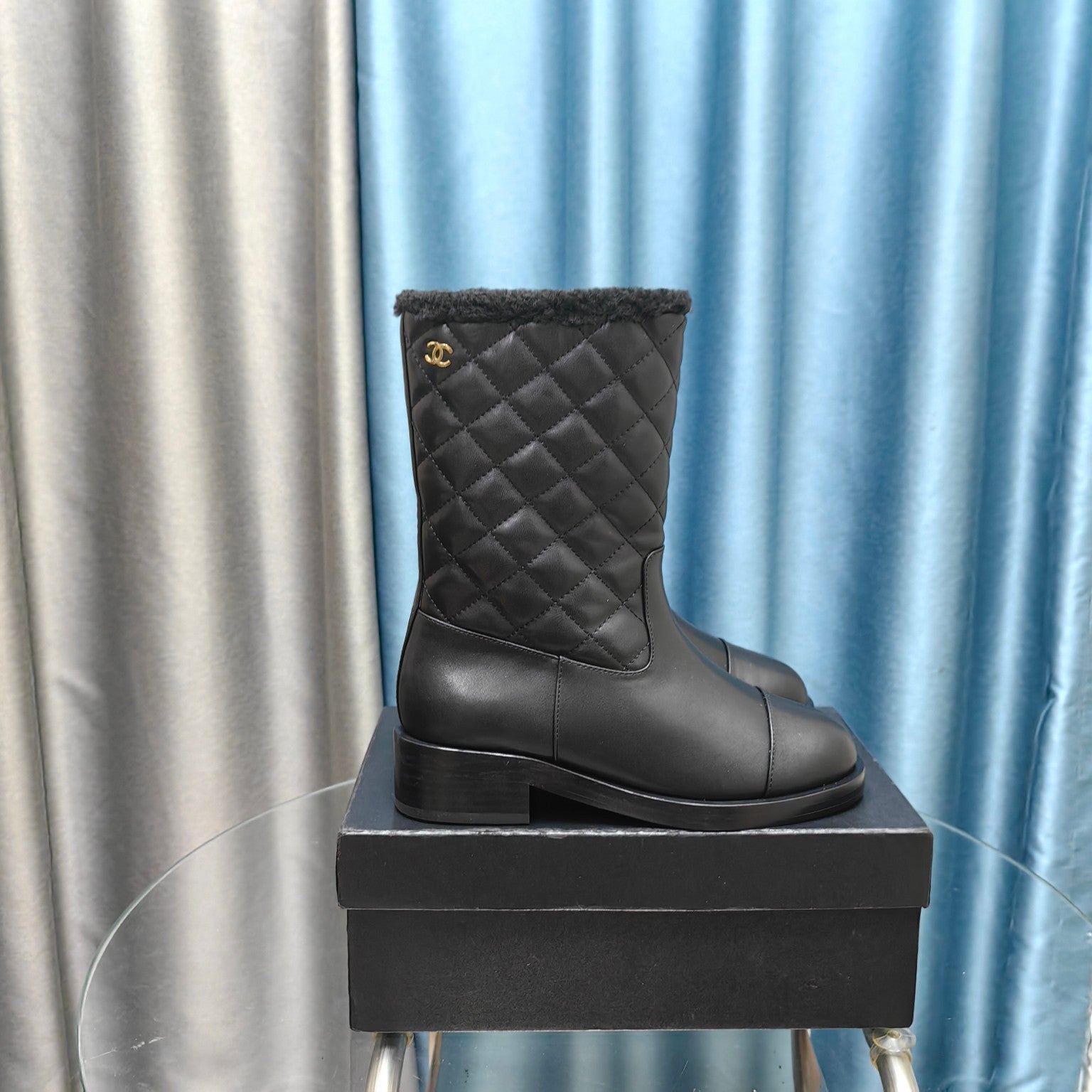 CC Short Boots Black Calfskin Lining Wool And Lambskin