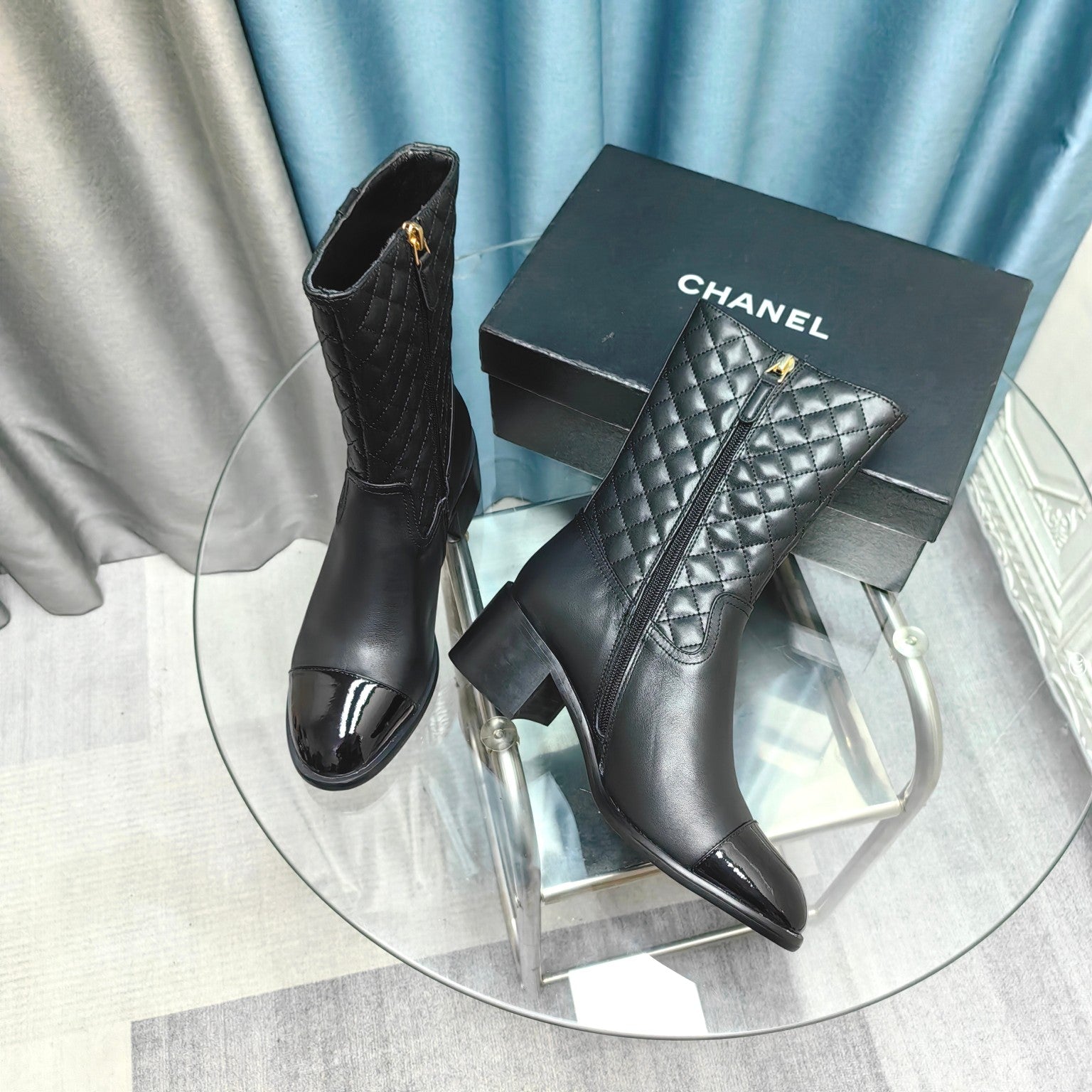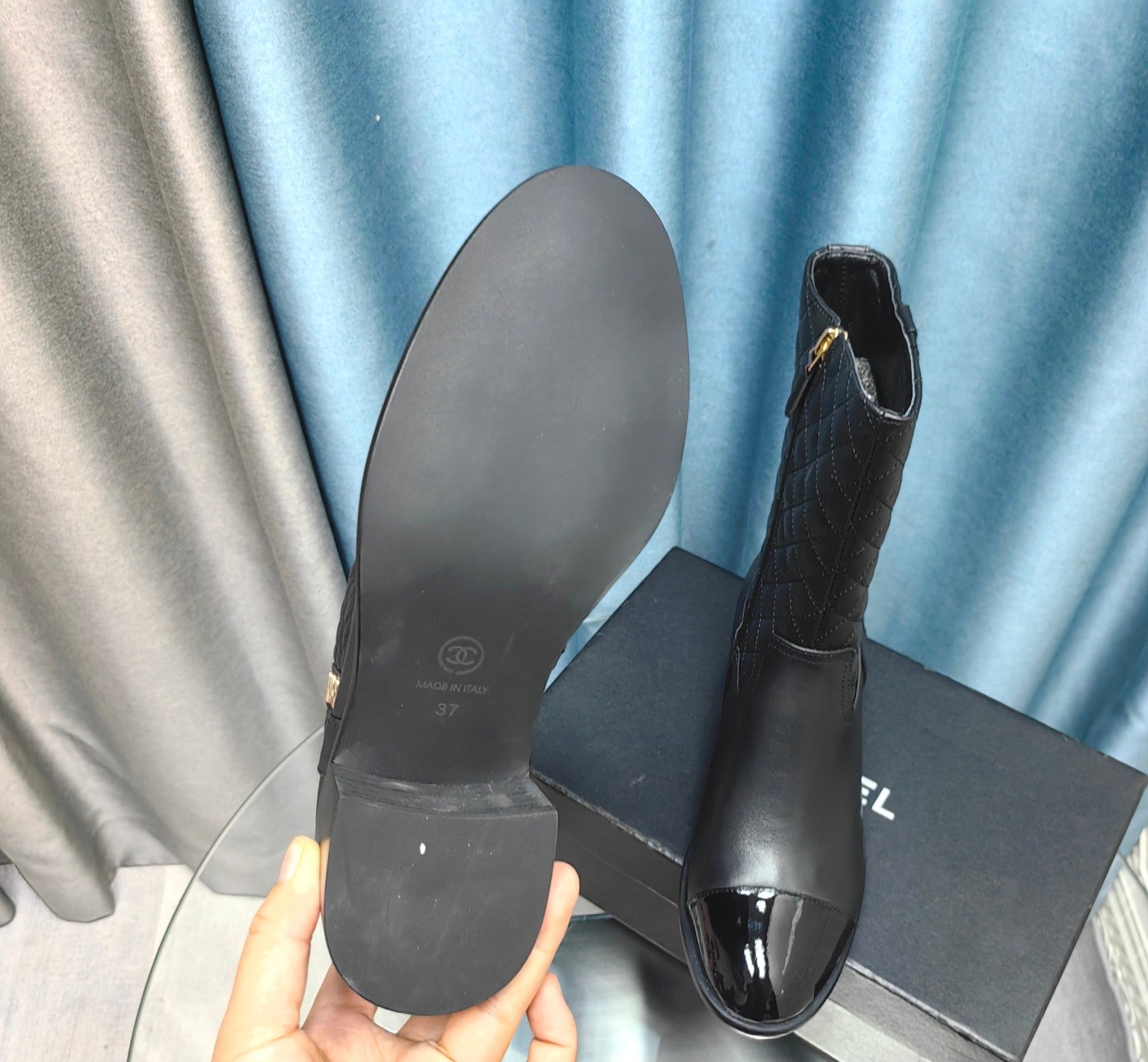 CC Short Boots Black Quilted Cowhide And Lambskin