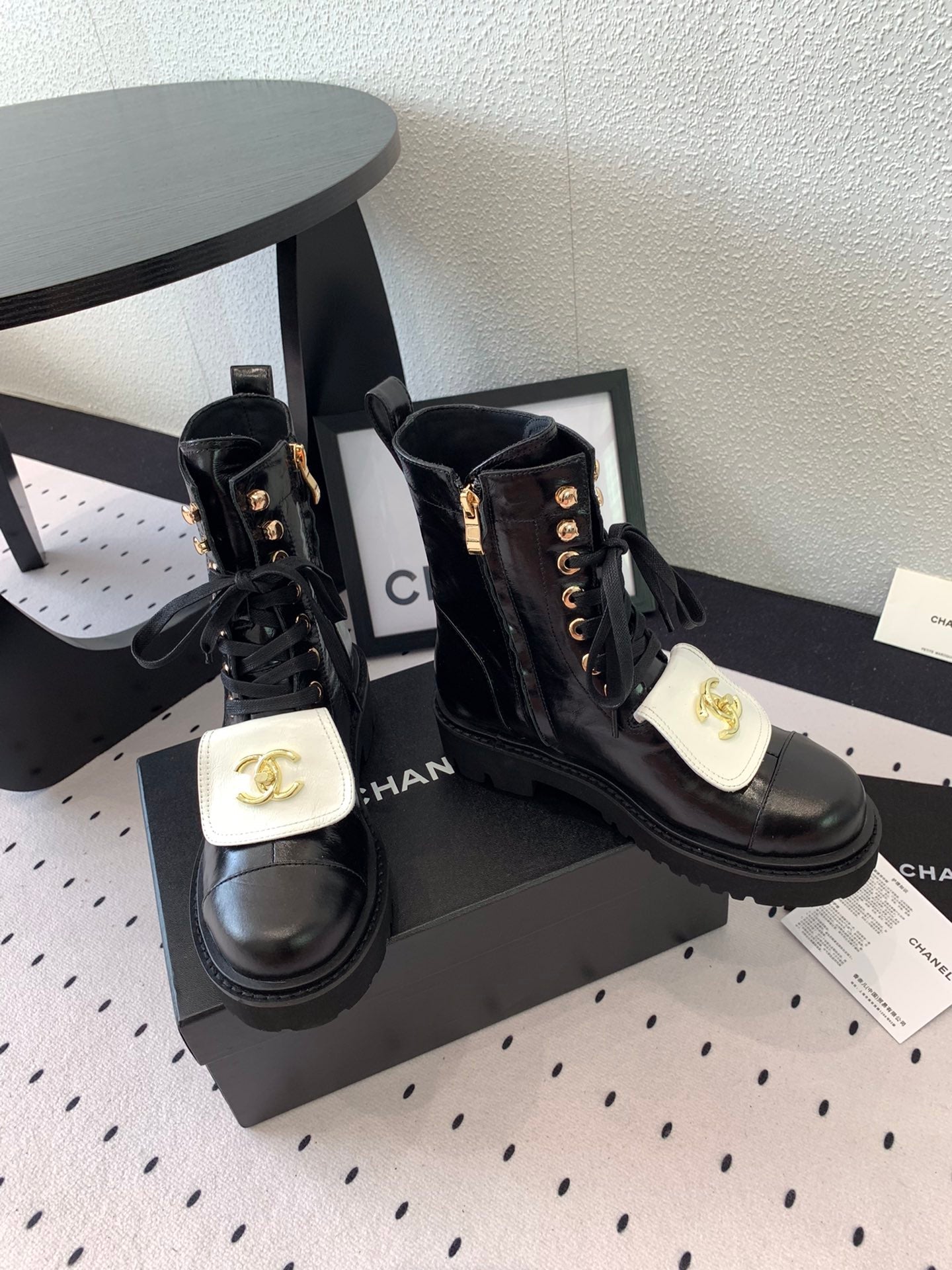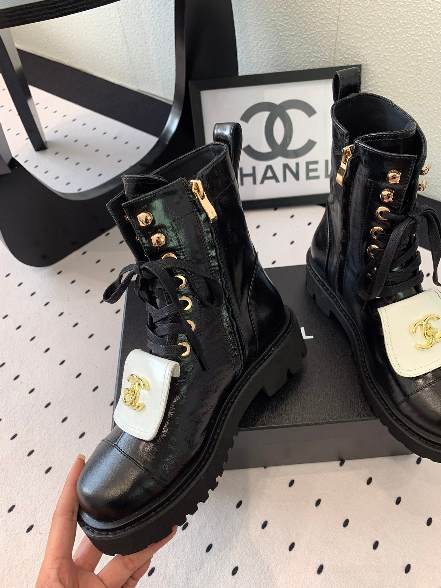 CC Short Boots In Black Mix White Logo Print Lambskin 938059