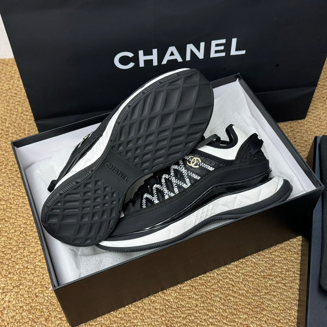 CC Sneaker Black Mix White Calfskin And Silk Parachute Fabric 947509