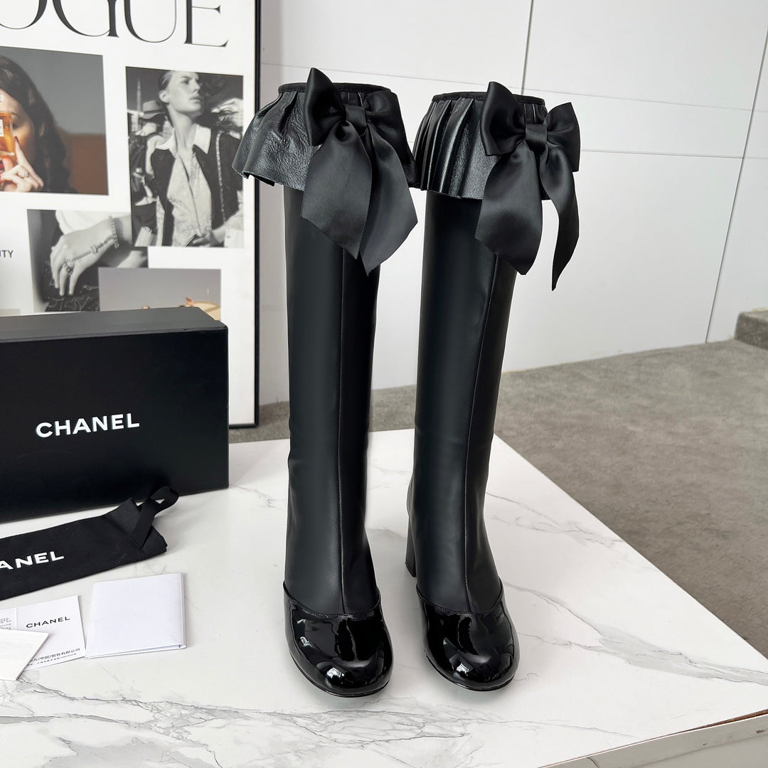 Chanel 25A Winter New Thigh Boots Black Brown Cowhide Mix Suede 393521