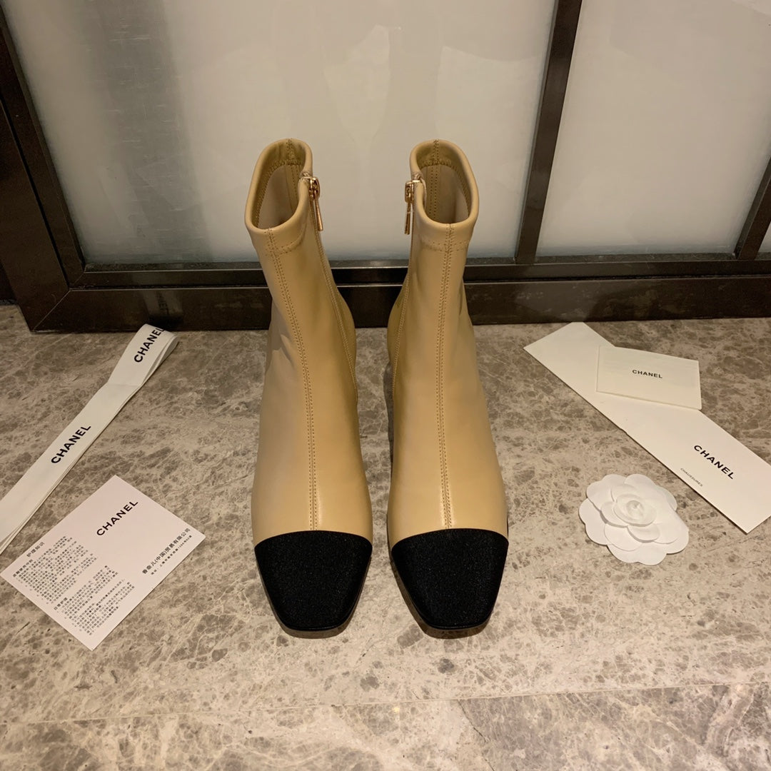CC High Boots 50mm In Beige Black Lambskin And Lycra Fabric 940064