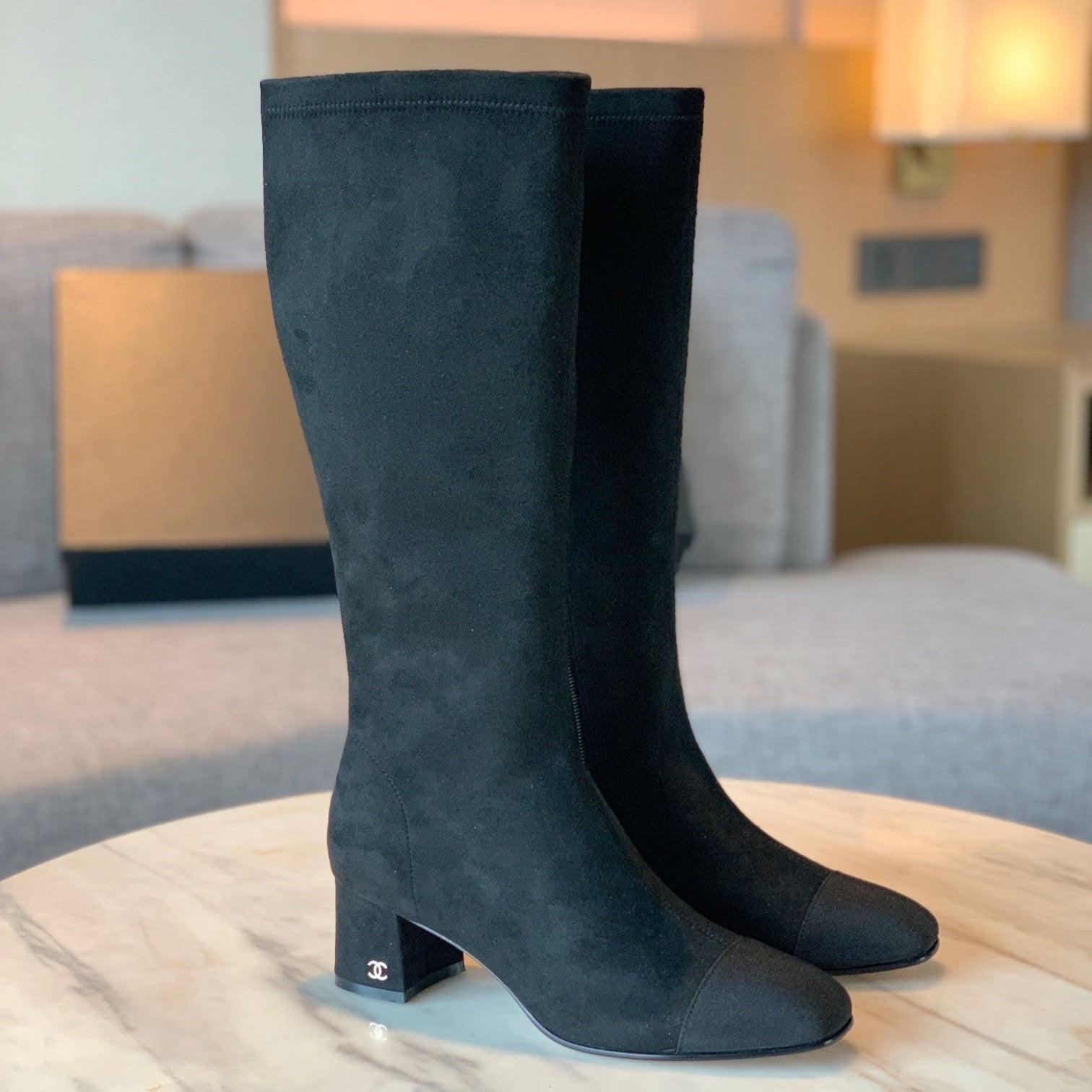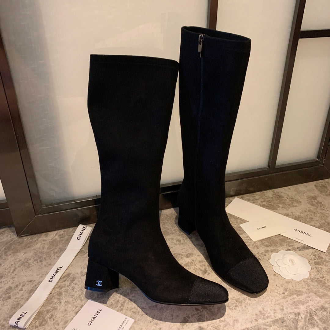 CC High Boots 50mm In Coffee Black Suede And Lycra Fabric 940062