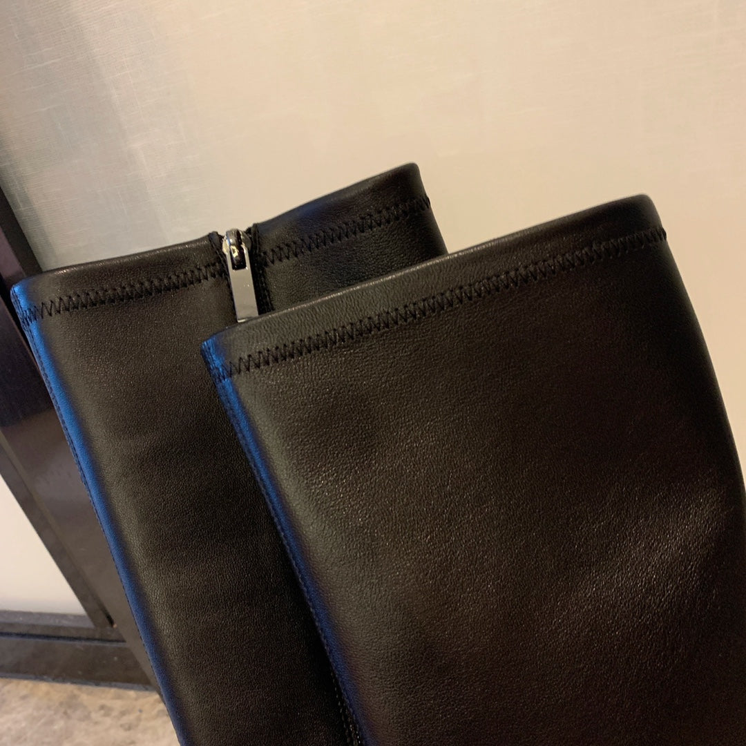 CC High Boots 70mm Plain Black Lambskin