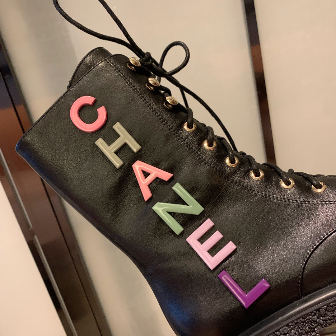CC Short Boots Black Quilted Calfskin