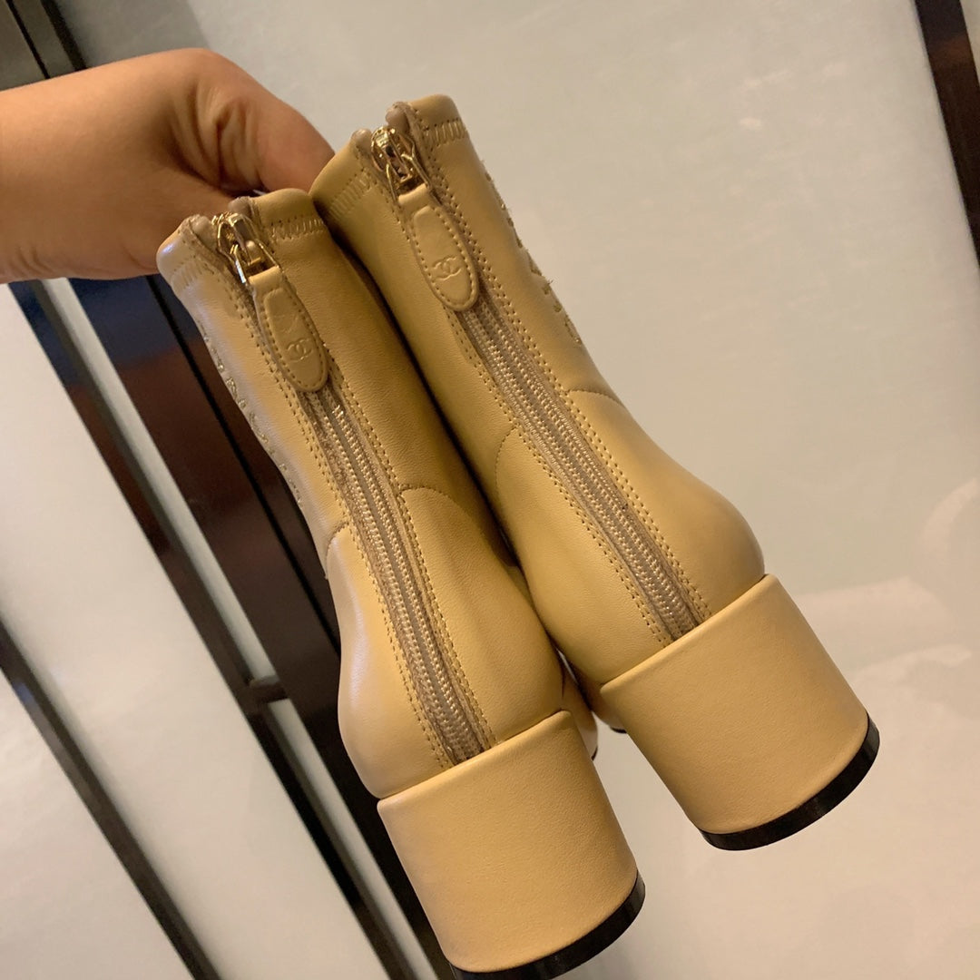 CC Short Boots 50mm In Beige Lambskin 940077