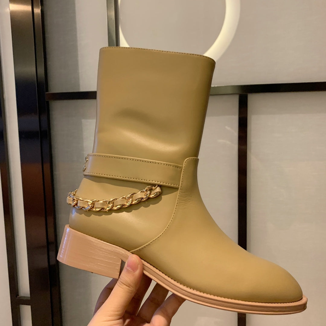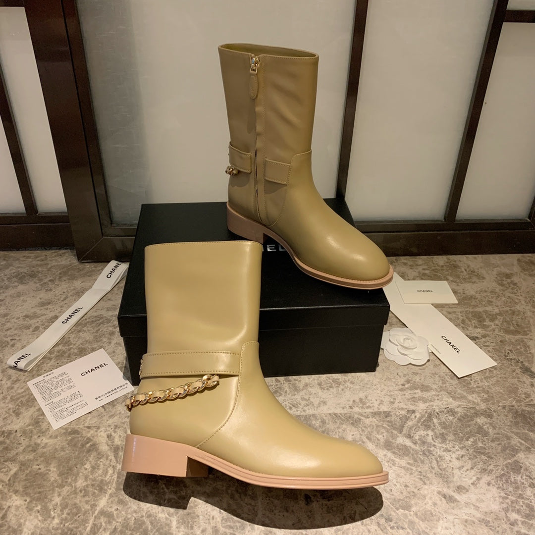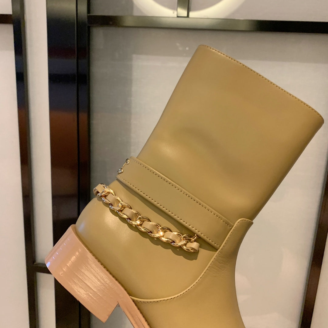 CC Short Boots 35mm In Beige With Chain Cowhide 940088
