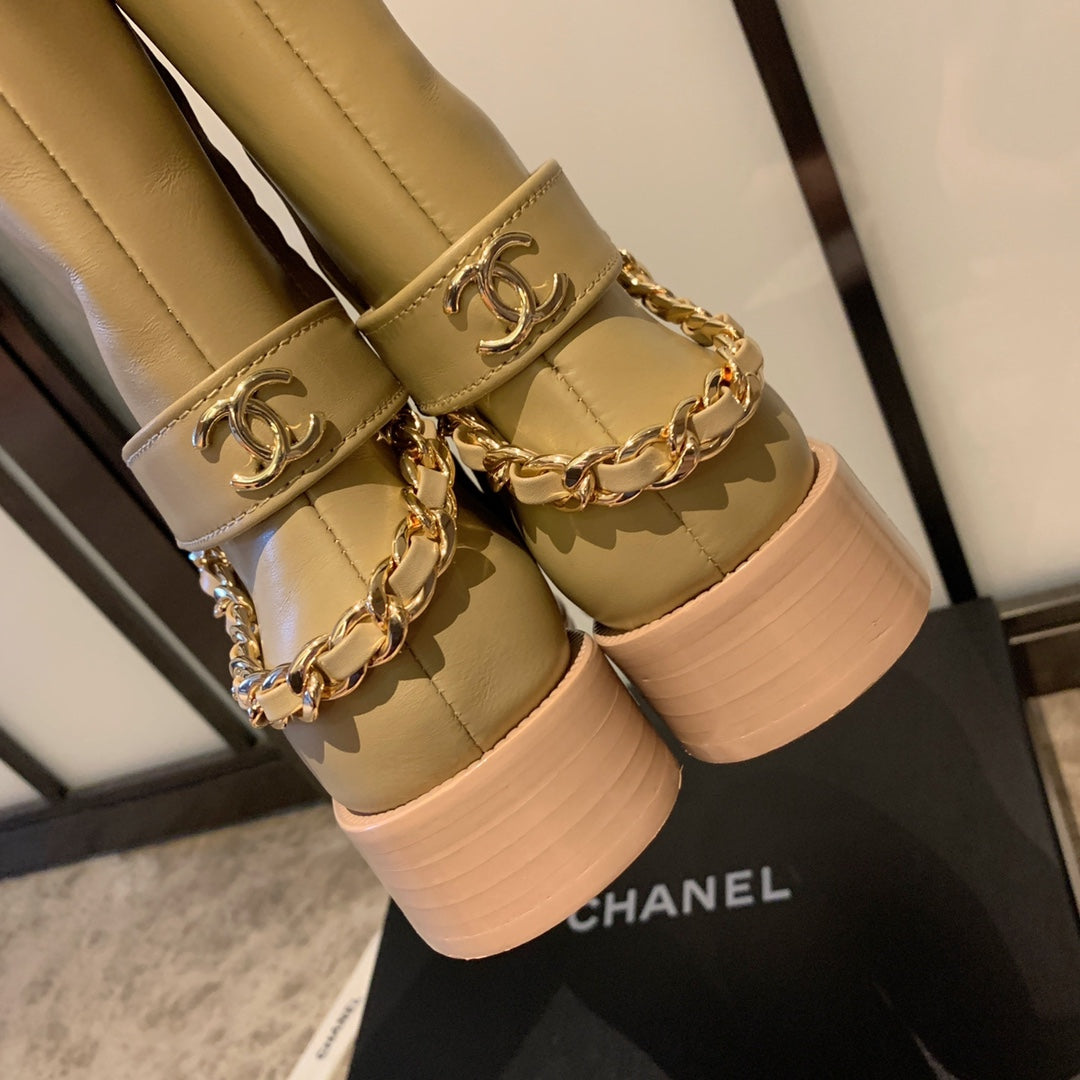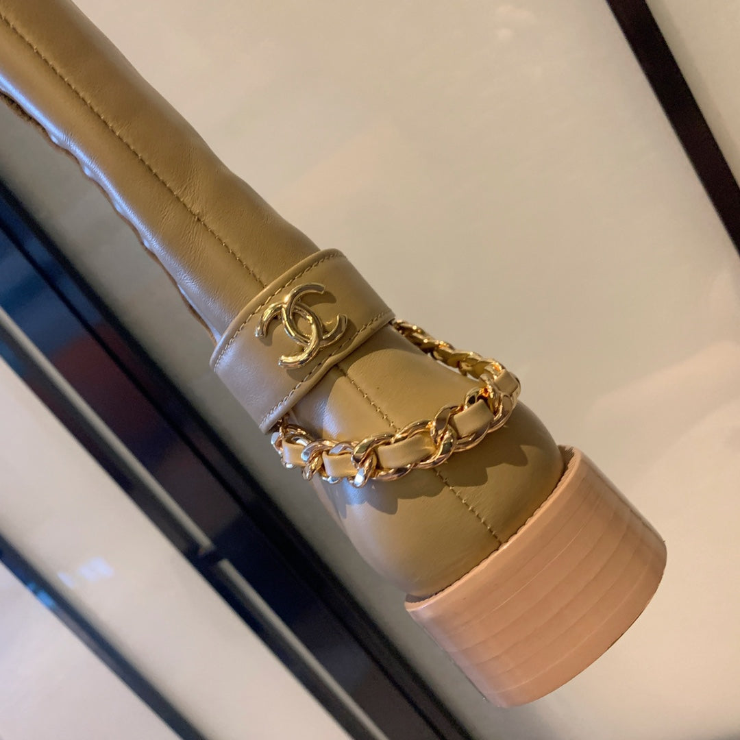 CC High Boots 35mm In Beige With Chain Cowhide 940093