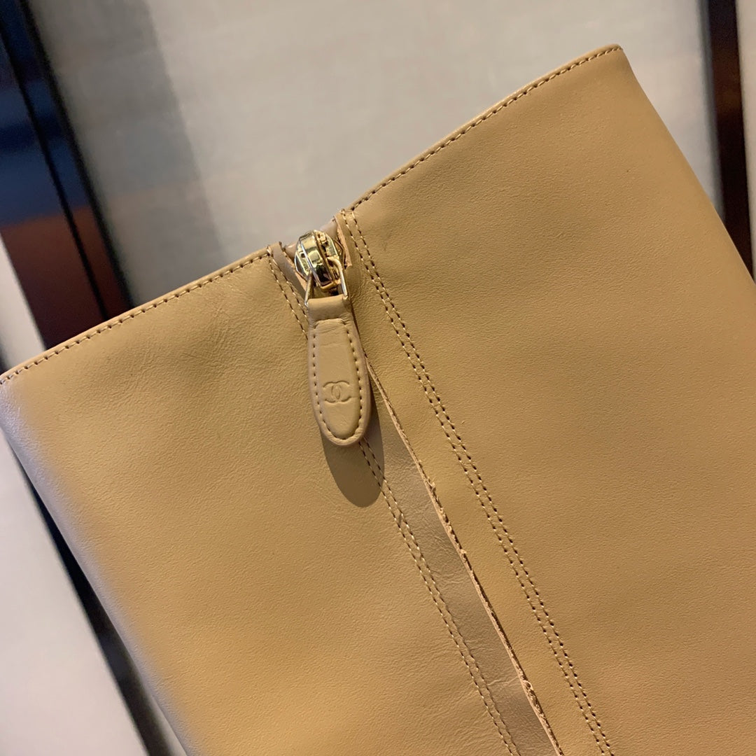 CC High Boots Beige Bow Tie Cowhide