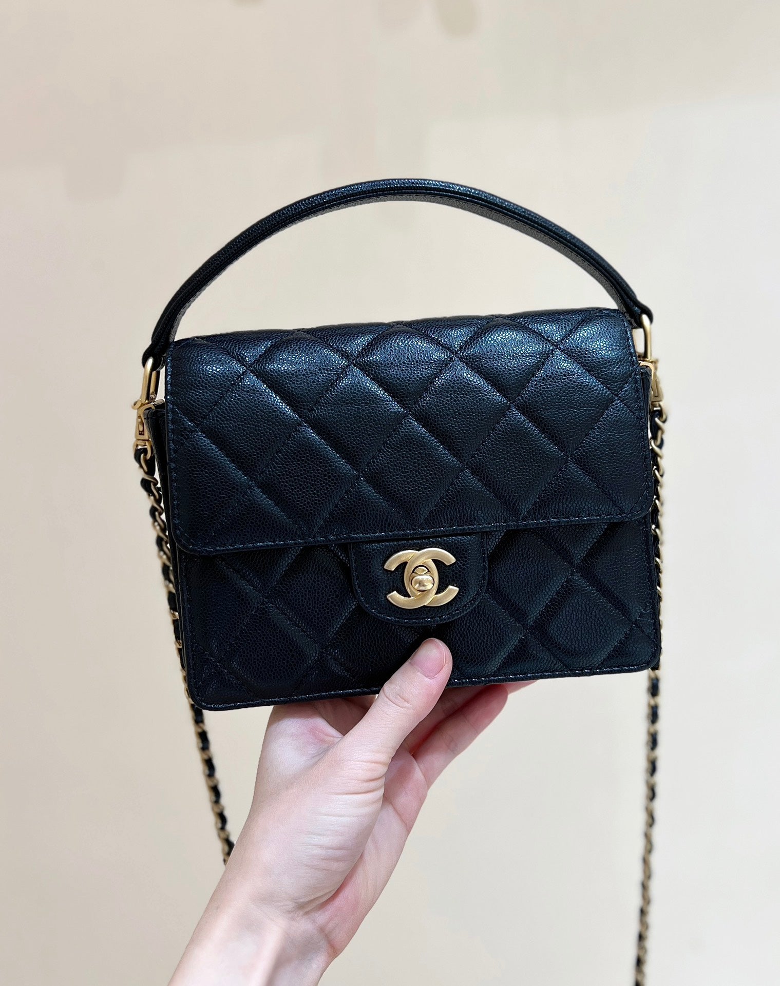 Chanel 24K Handle Flap Bag Black Calfskin Leather