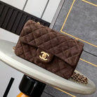 Chanel 25 Flap Bag Dark Brown Gold Suede Leather