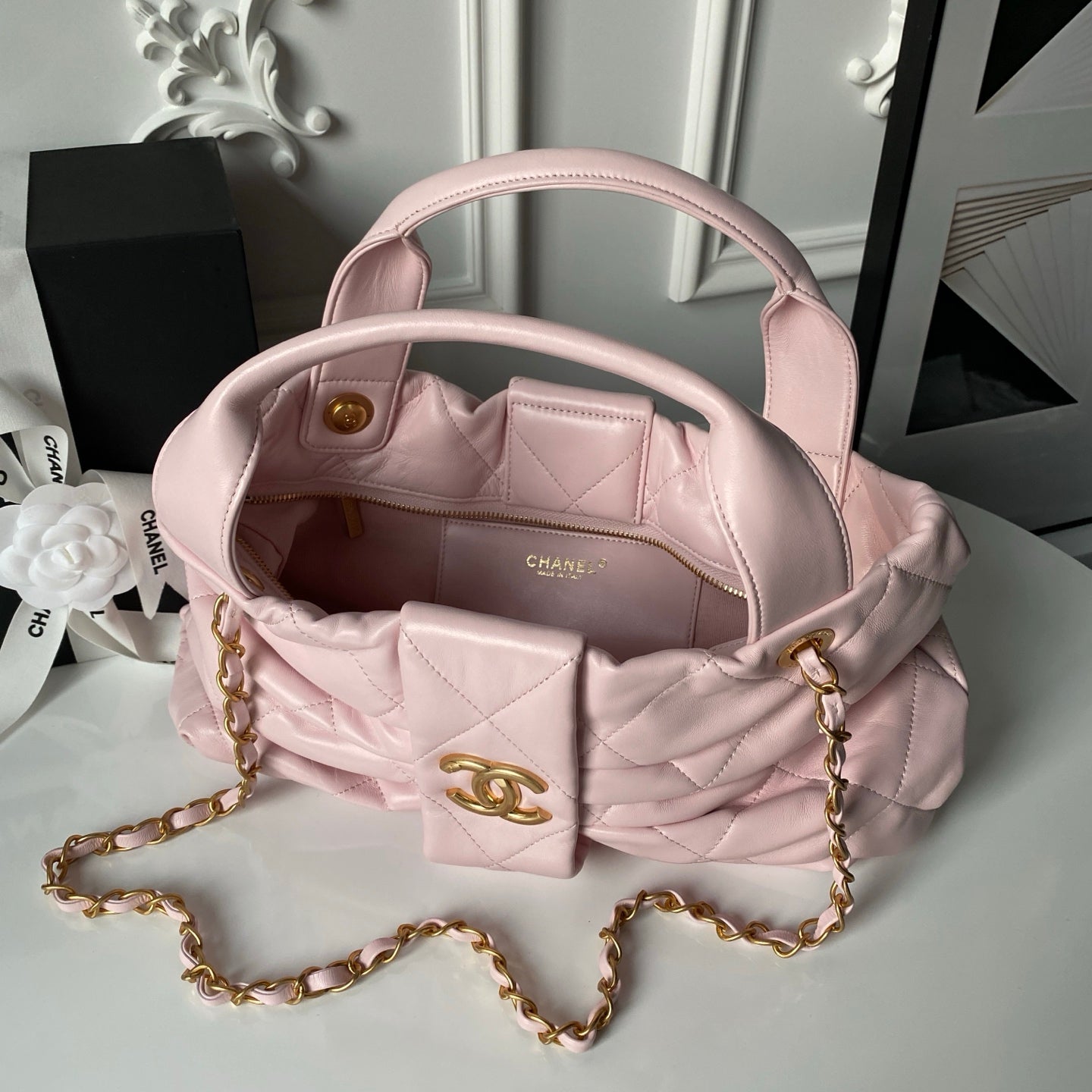Chanel 25K Bow Bag Pink Gold Calfskin 295190