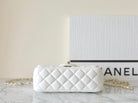 MINI RECTANGLE FLAP BAG TOP HANDLE 20CM WHITE LAMBSKIN SILVER HARDWARE