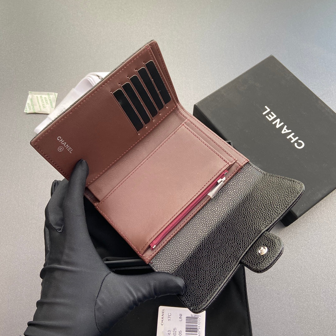 cc zipped wallet 20cm black quilted caviar silver hardware