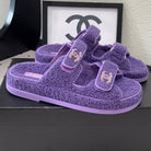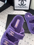 CC DAD SANDAL MULE IN PLUM PURPLE LAMB FUR