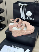 CC HIGH WEDGE SANDALS IN LIGHT PINK LAMBSKIN