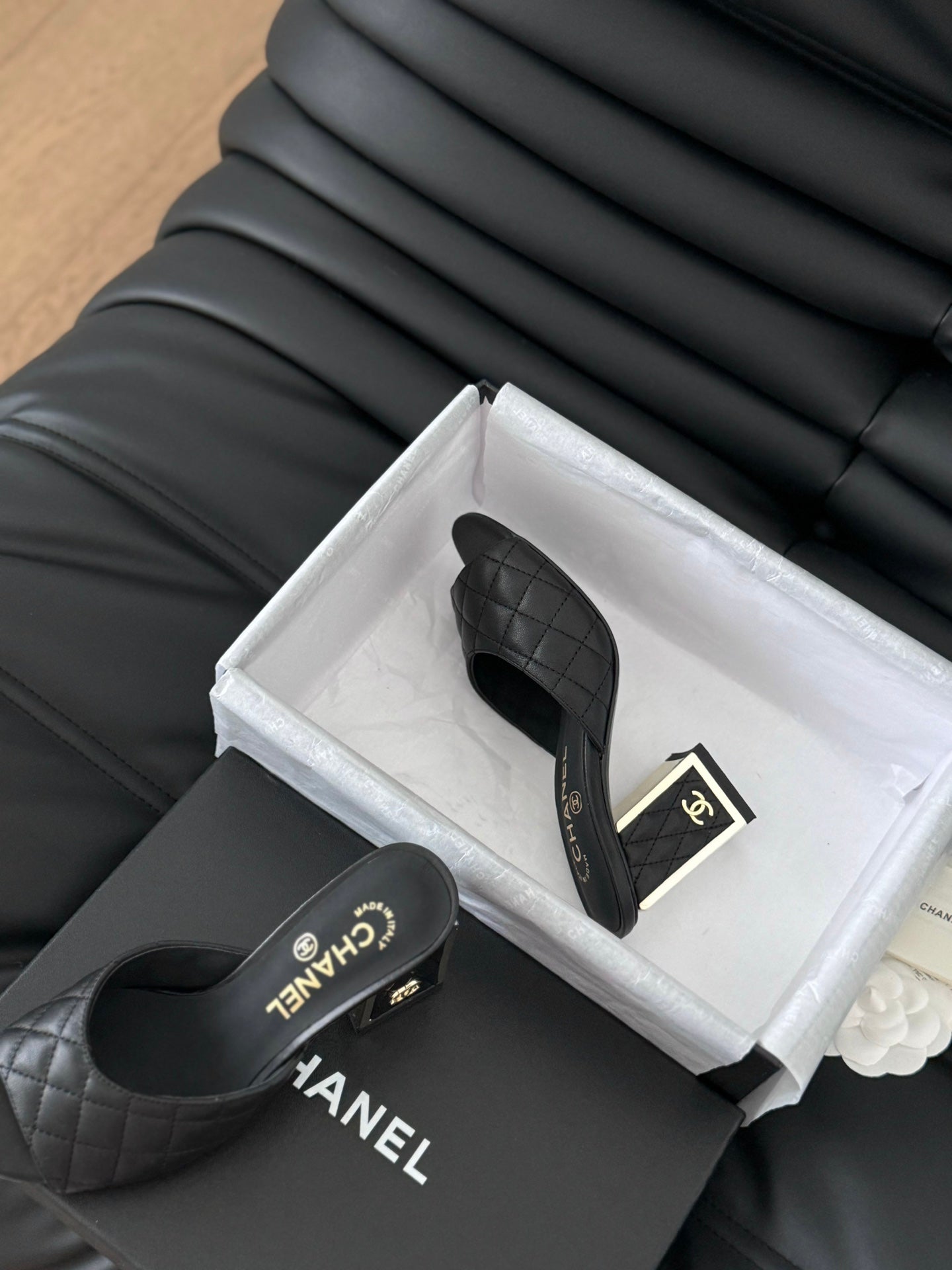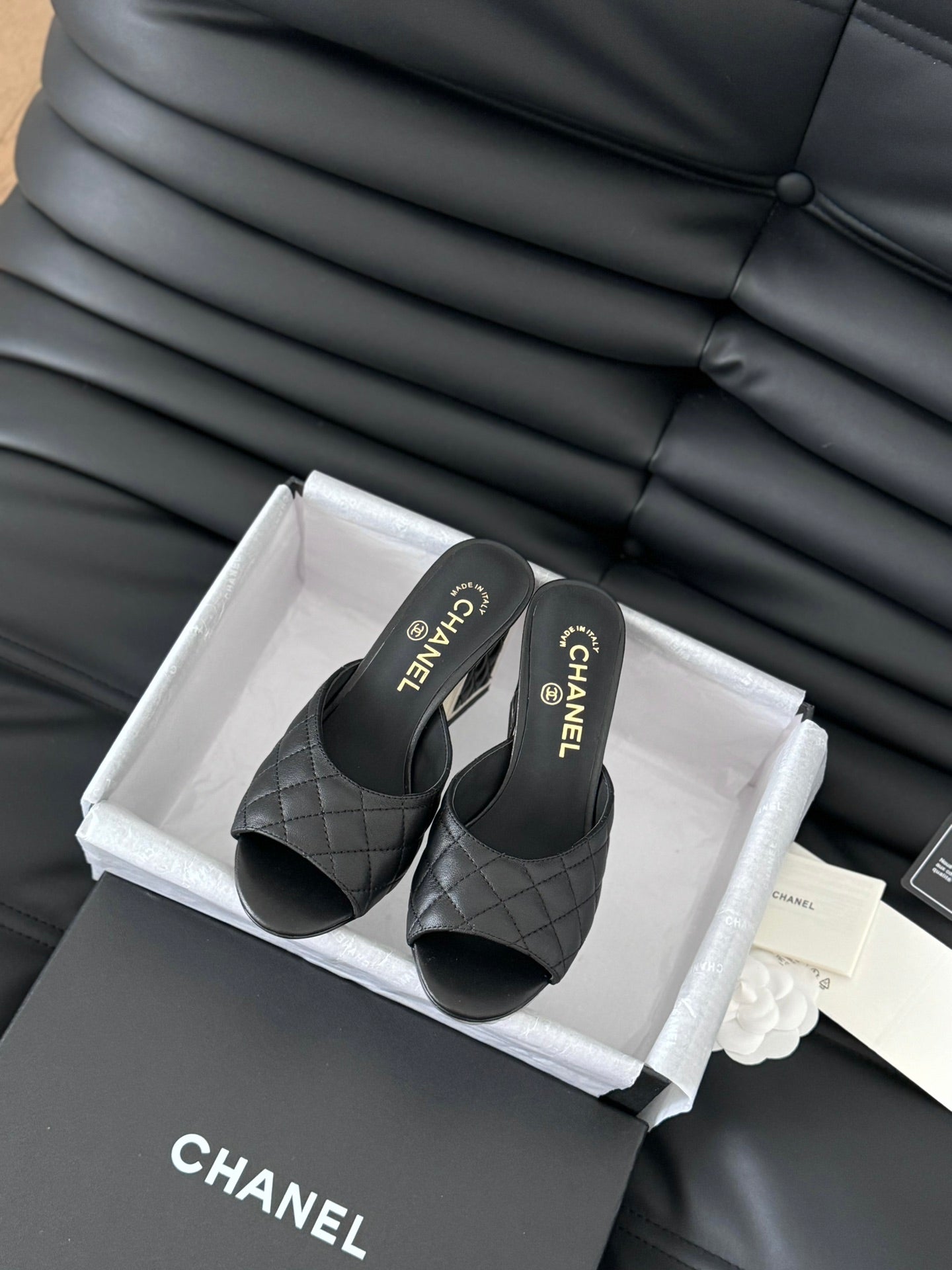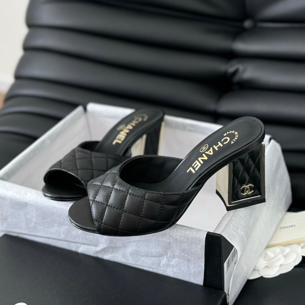cc sandal 70 black quilted calfskin