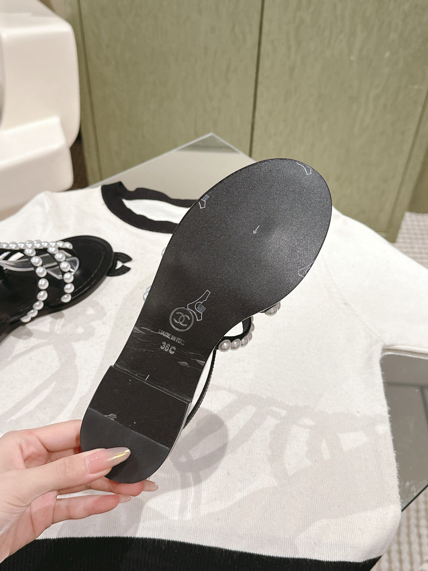 CC SANDALS PEARL ROMAN IN BLACK LAMBSKIN