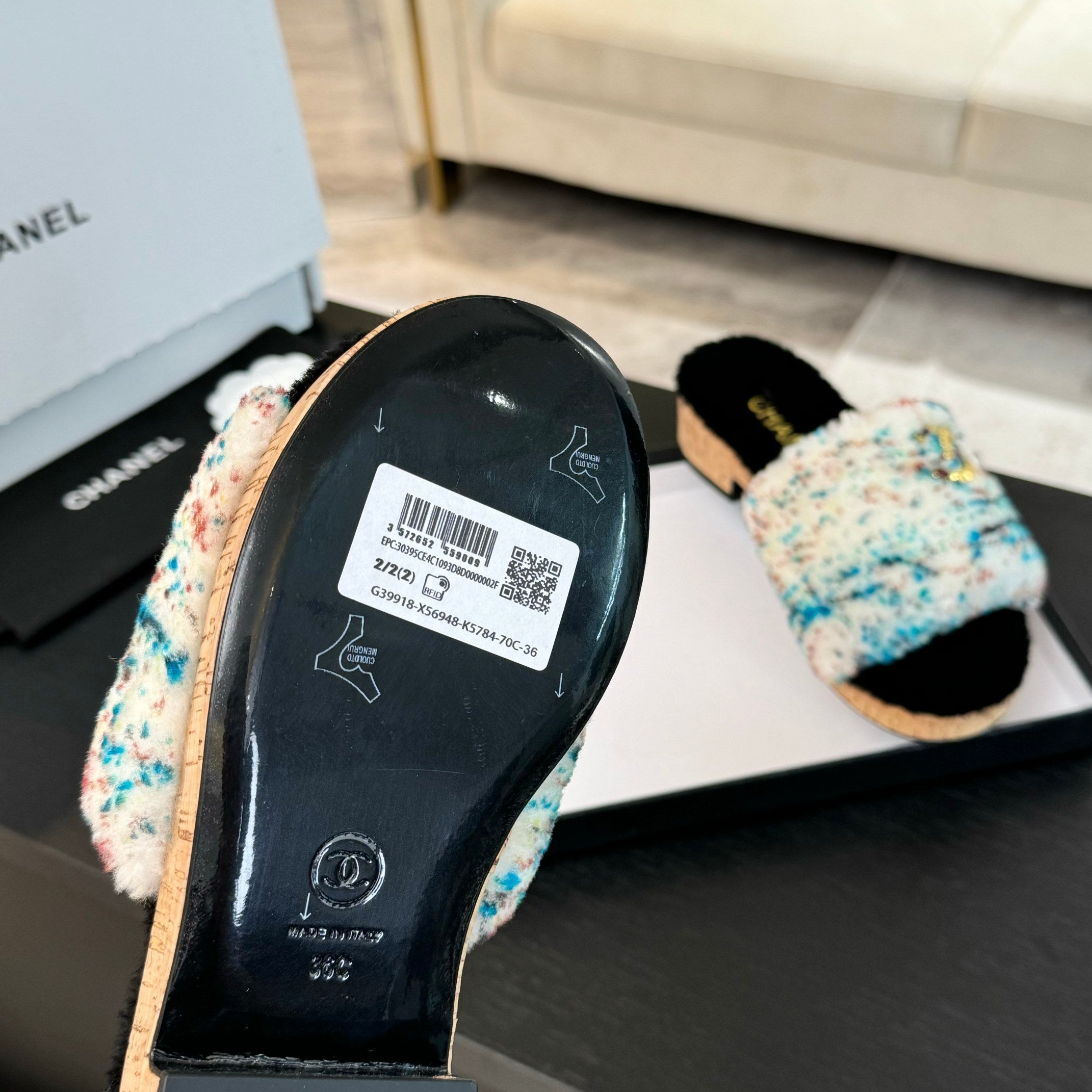 CC Slippers White Black Mix Blue Red Fleece Wool