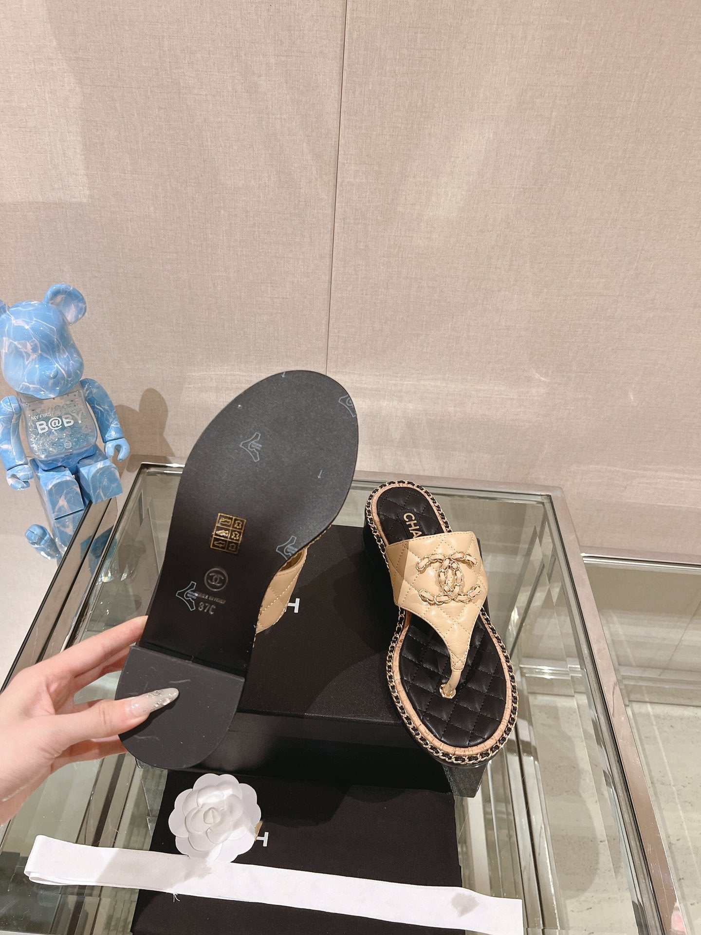 cc thong sandal 50 beige black quilted lambskin