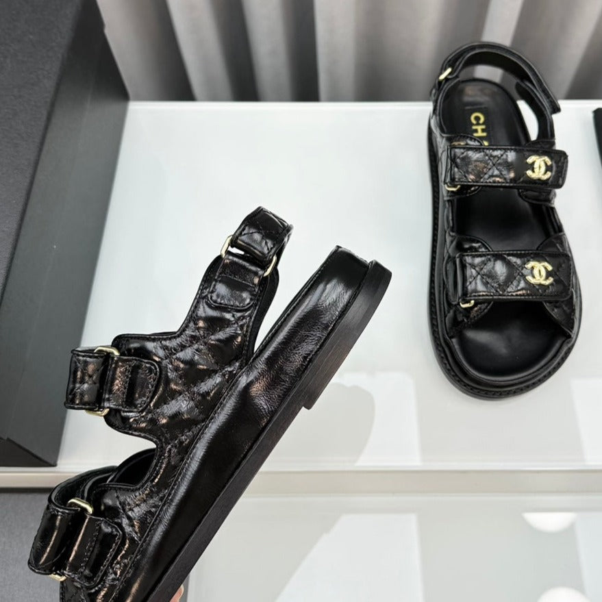 dad sandals black patent lambskin