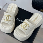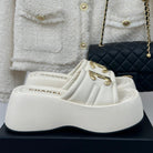 Large Double C Platform Slippers White