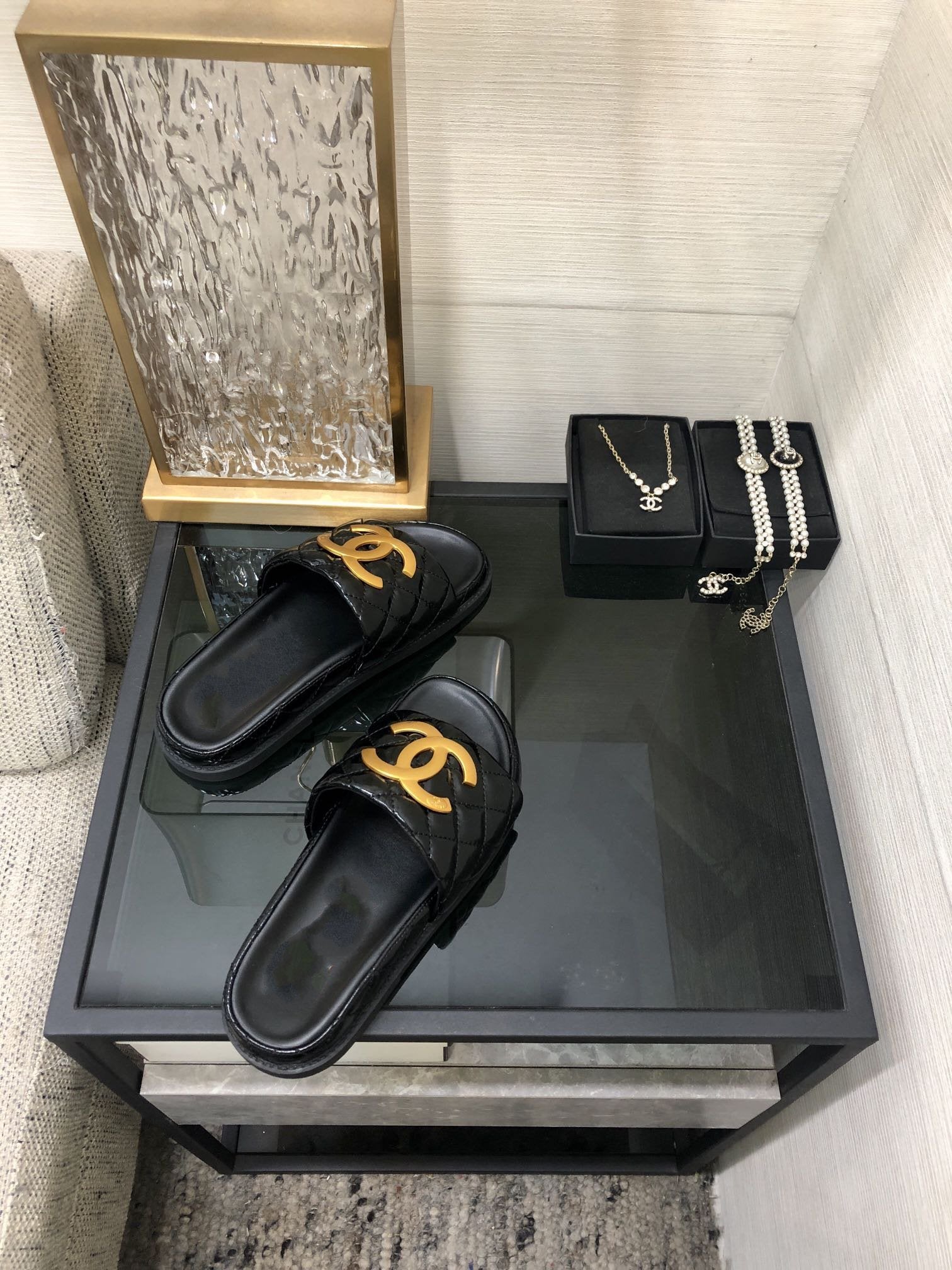 mule sandal 30 black quilted waxed leather