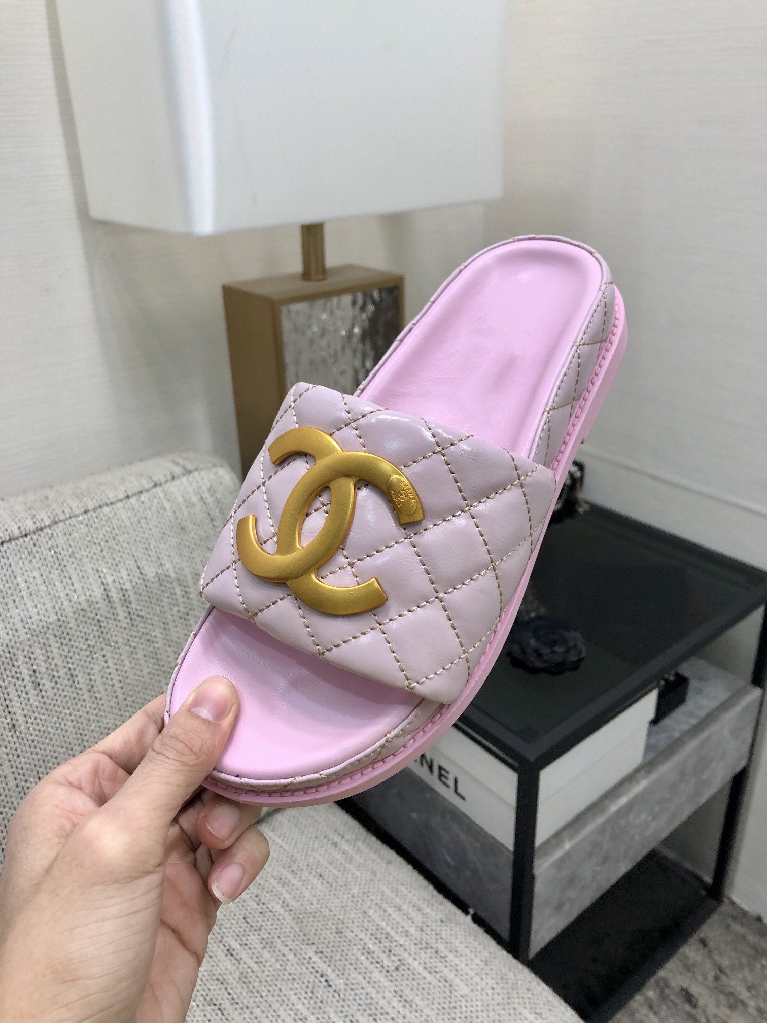 mule sandal 30 pink quilted waxed leather