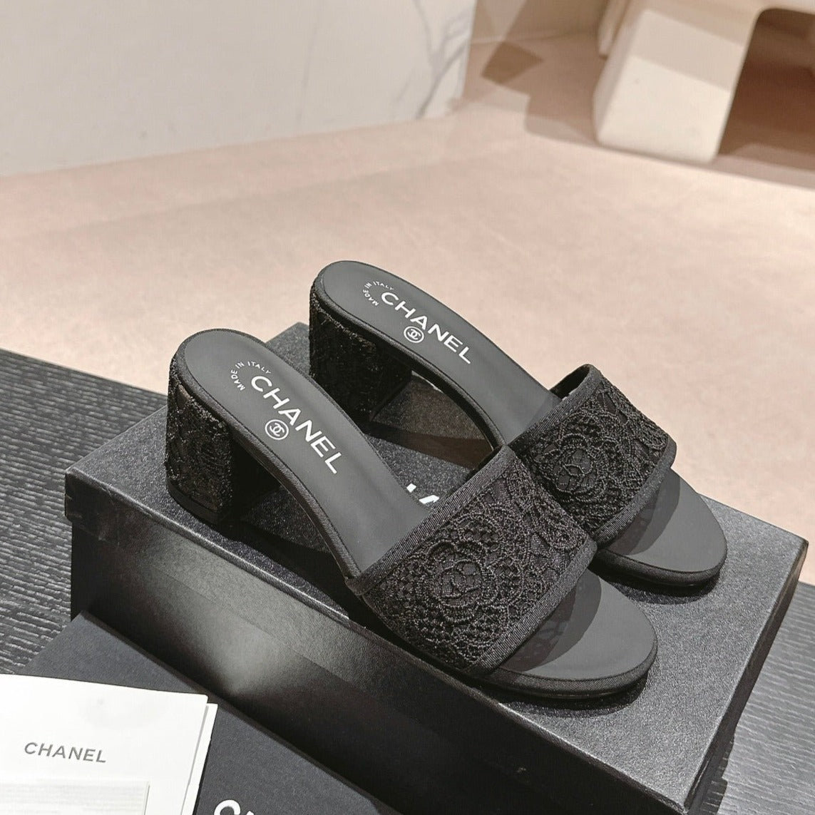 mule sandal 60 black lace fabric