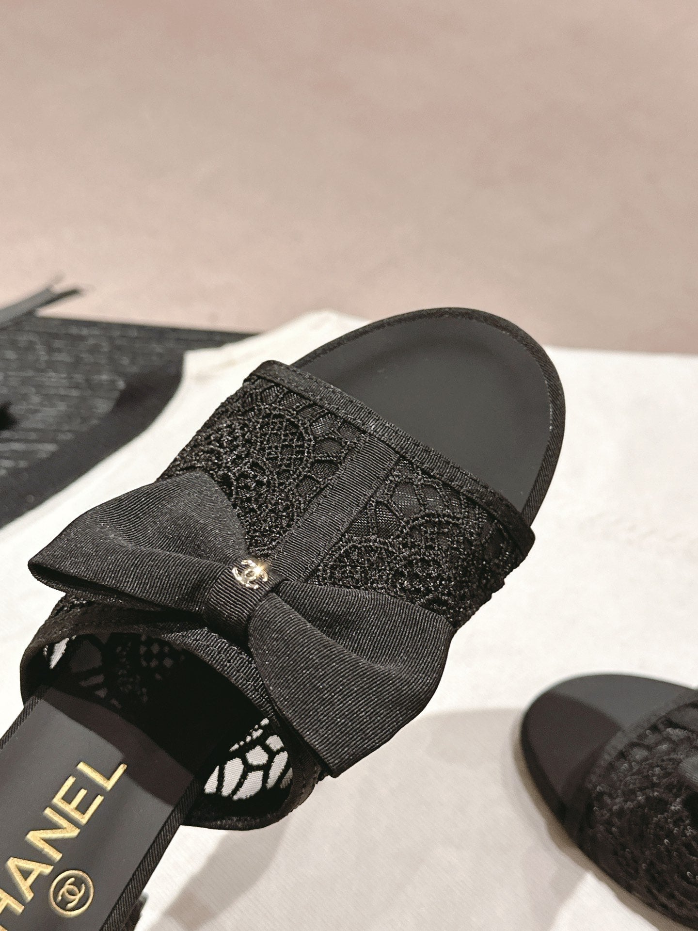 mule sandal 60 bowtie black lacce fabric