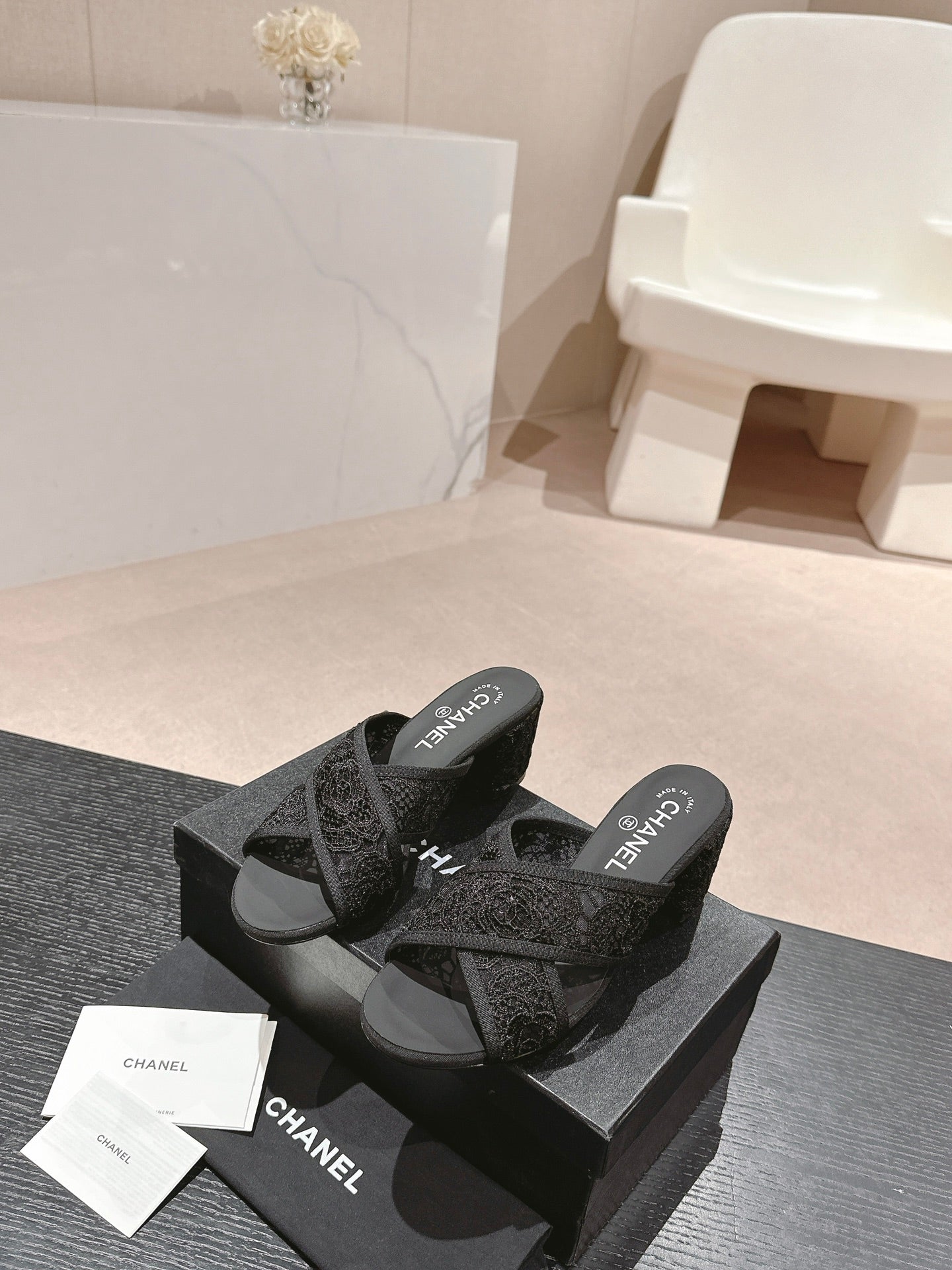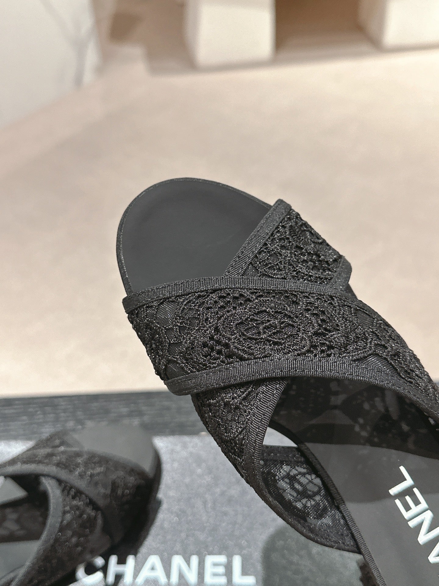 mule sandal 60 cross black lace fabric
