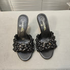 mule sandal 80 black calfskin flower