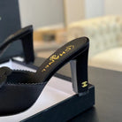 mule sandal flower high heel 80 black satin