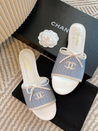 mule sandal white blue embroidered fabric calfskin