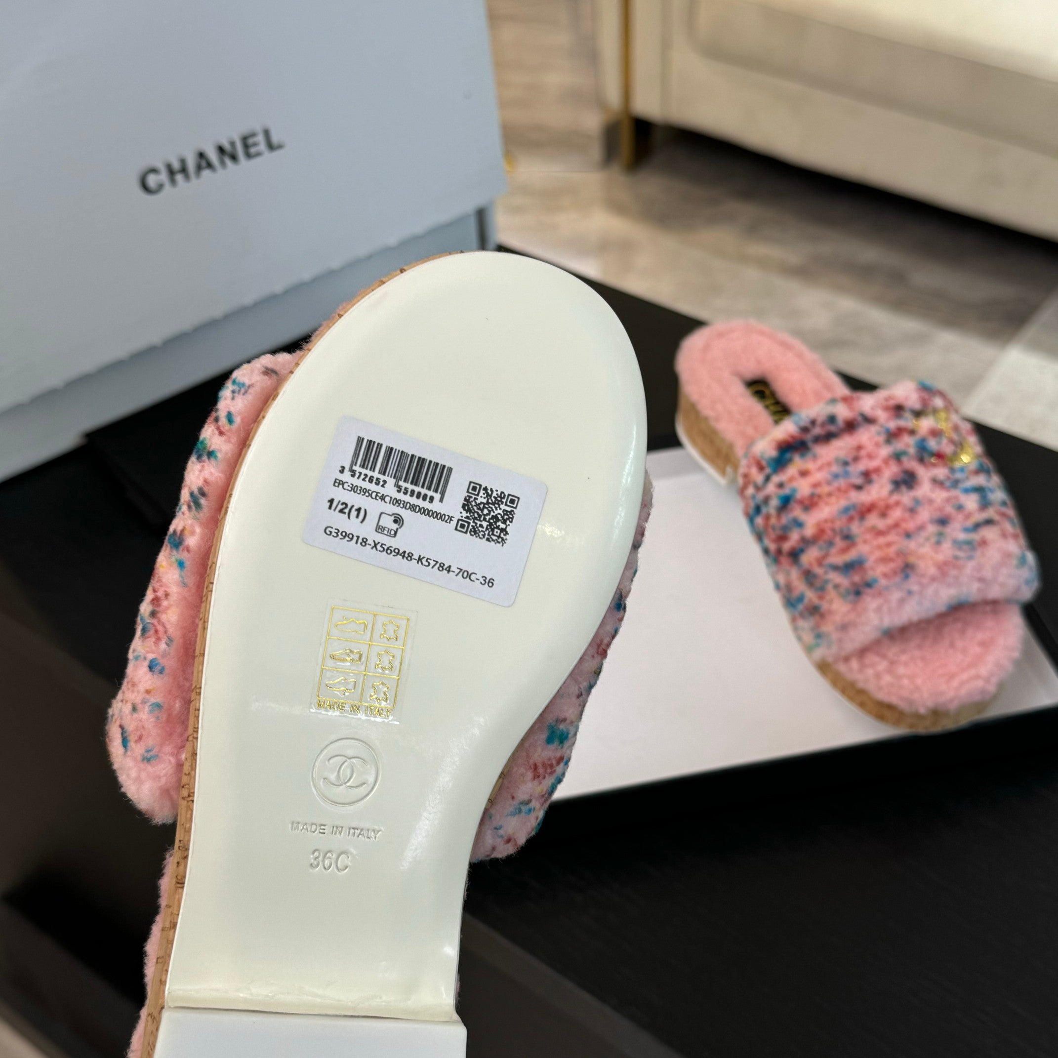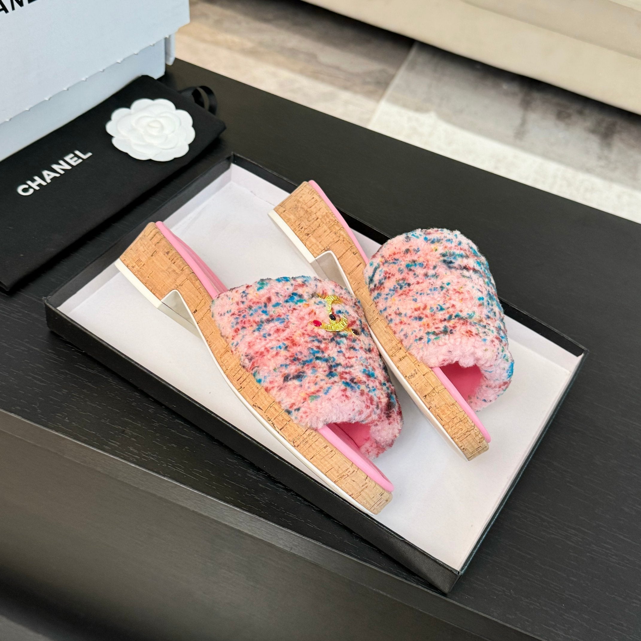 CC Slippers Pink Mix Blue Red Wool And Calfskin