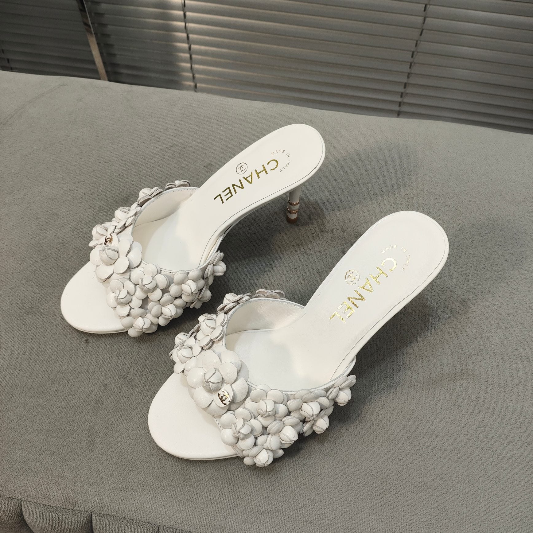 CC MULE WITH SILK WHITE BOW AND BLACK LAMBSKIN