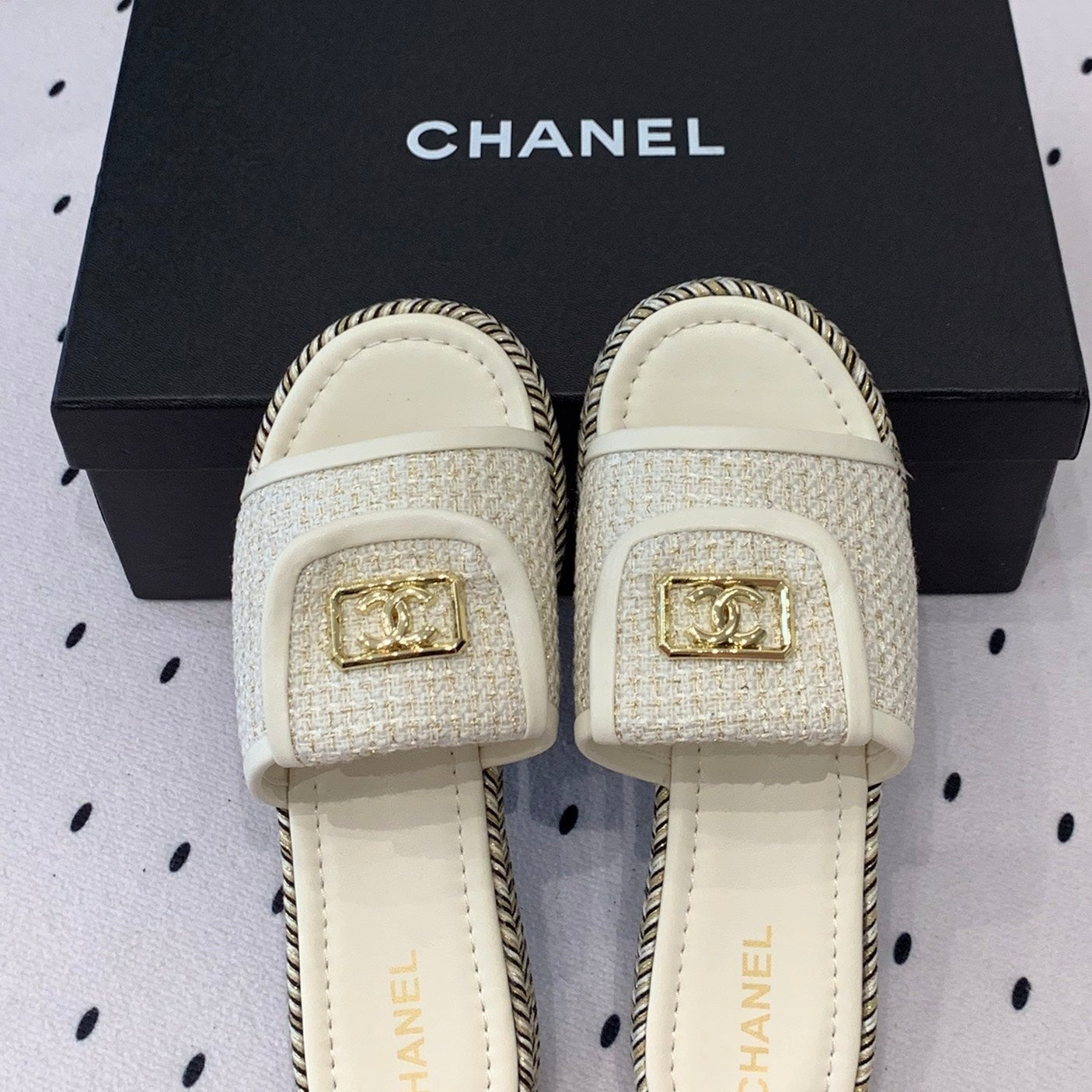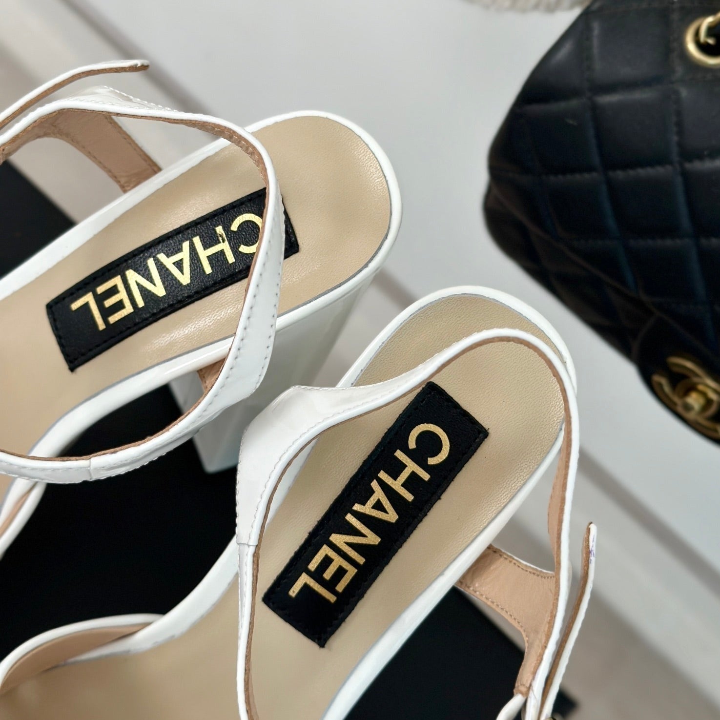 Double C Classic One-Strap Sandals White Navy Blue Lambskin