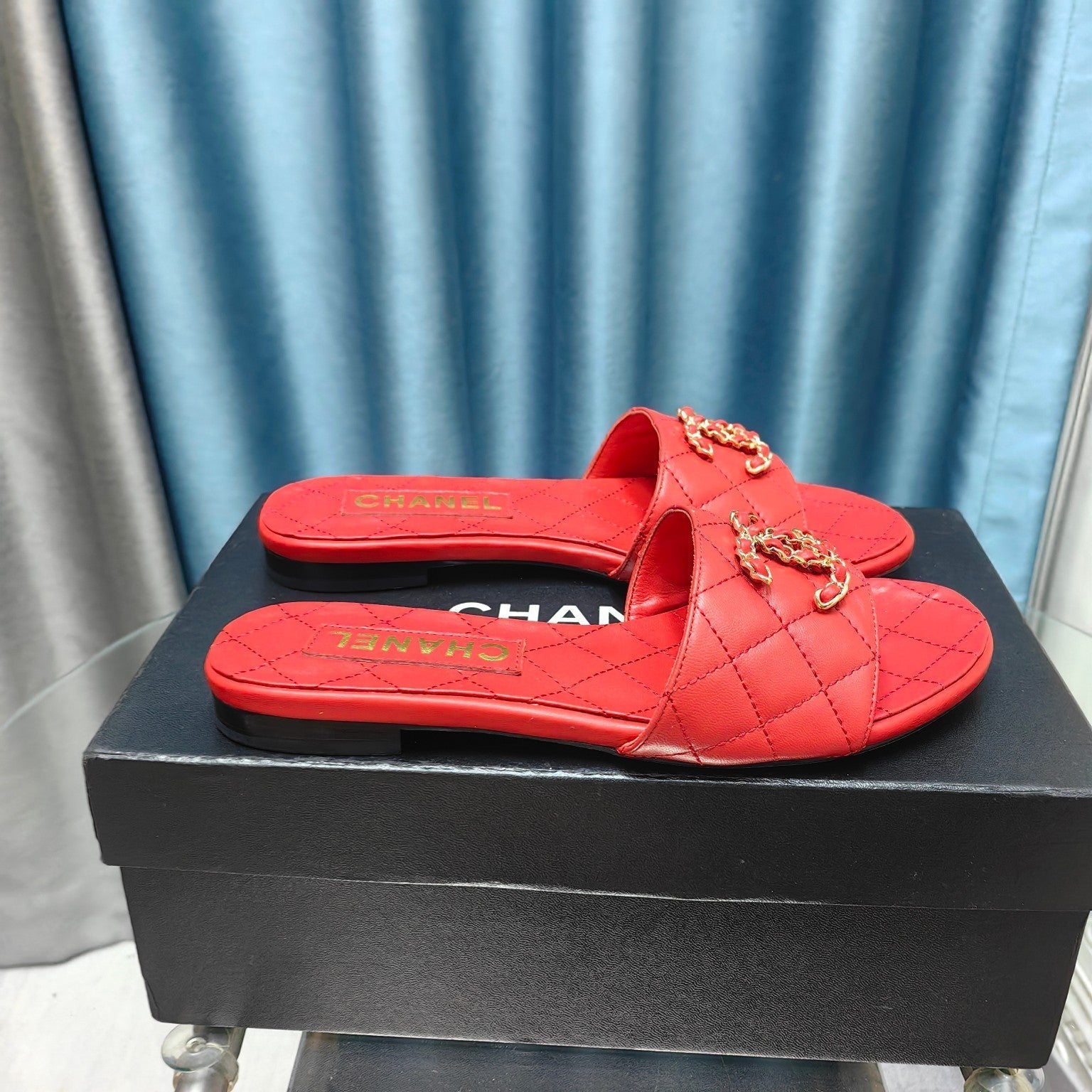 Double C Classic One-Strap Sandals Tan Brown Lambskin