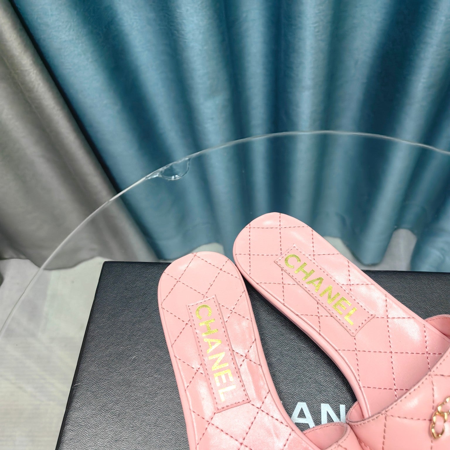 Double C Classic One-Strap Sandals White Pink Lambskin