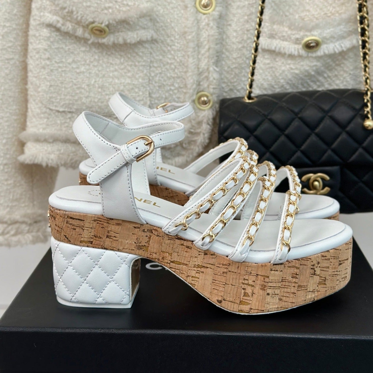 Double C Classic One-Strap Sandals White Gray Smoke Lambskin