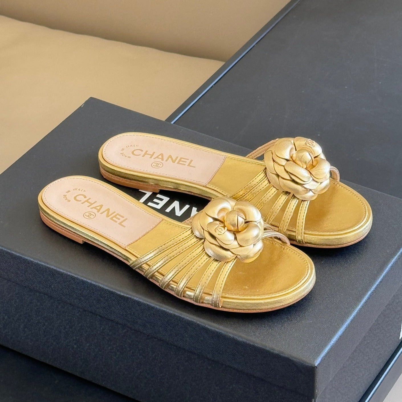CC 25 Flip Flop Sandals Beige Calfskin Espadrilles
