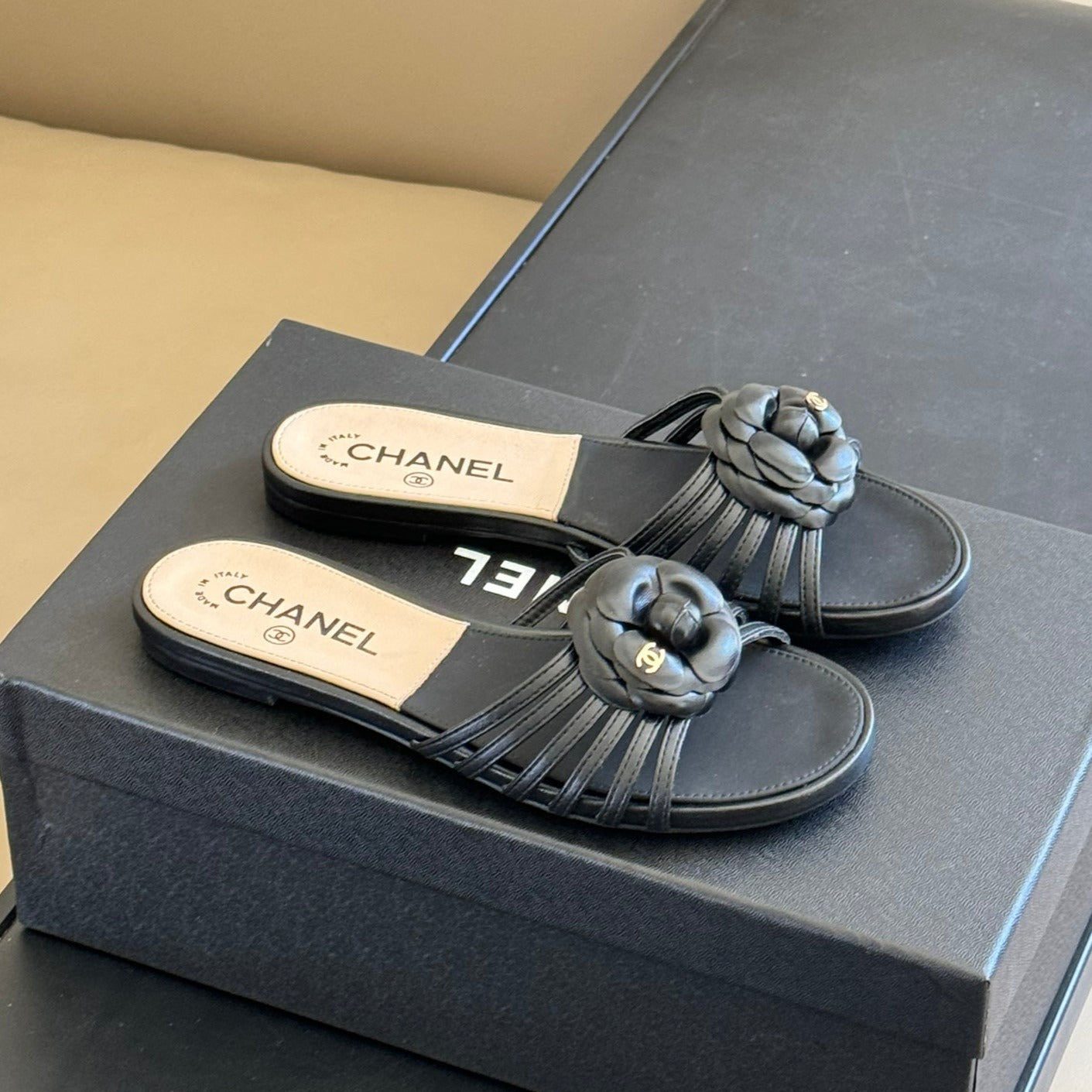 CC 25 Flip Flop Sandals Black Calfskin Espadrilles