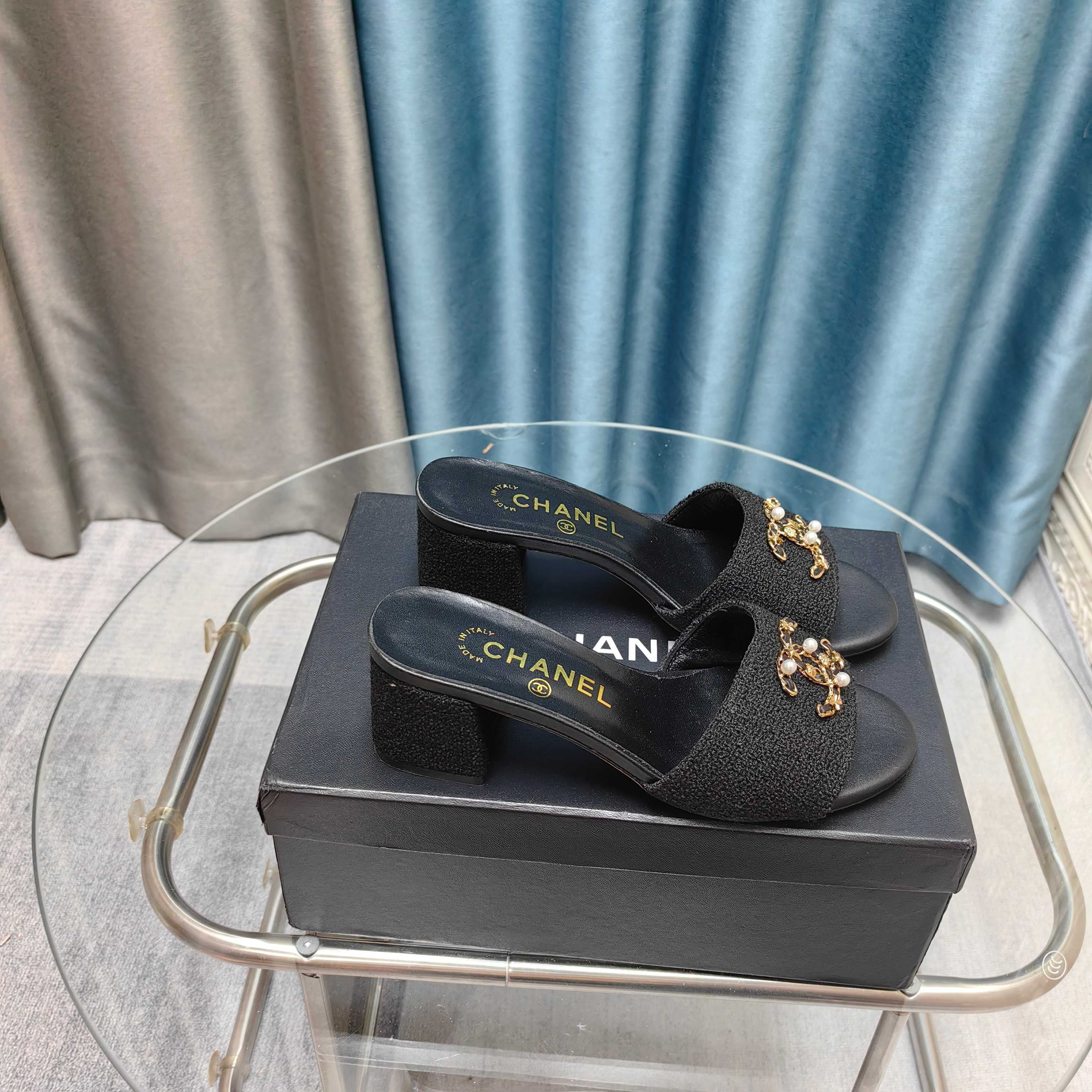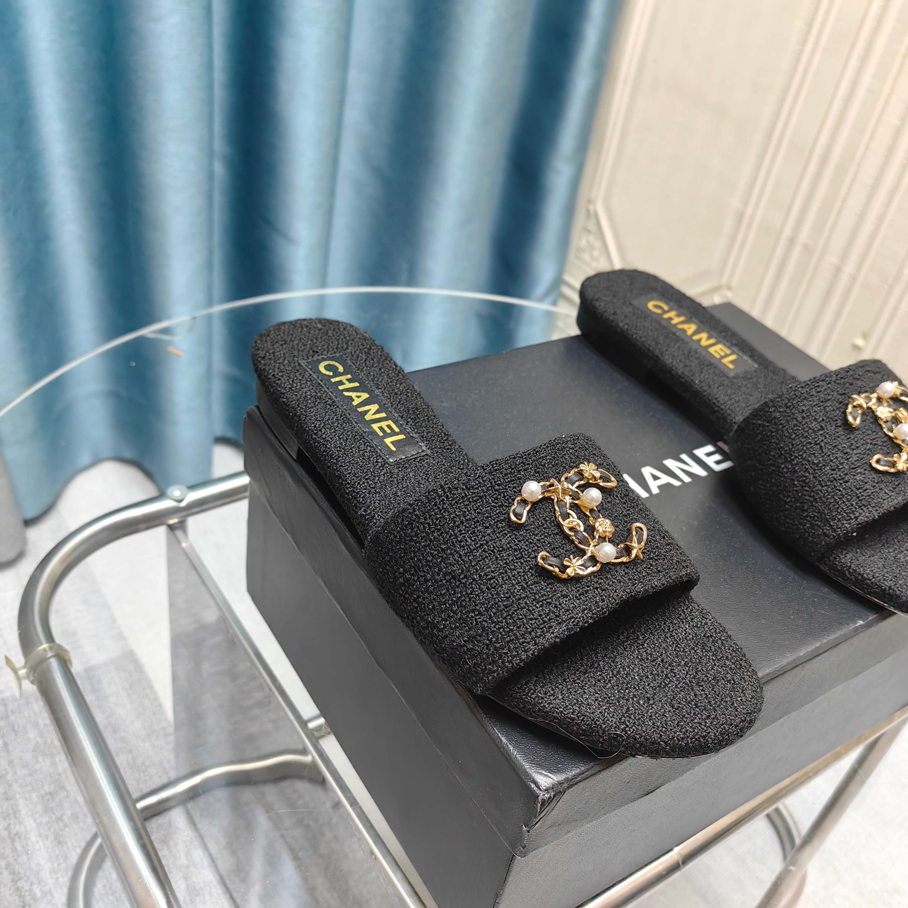 CC Toe Sandals Black Tweed Mix Leather 299540
