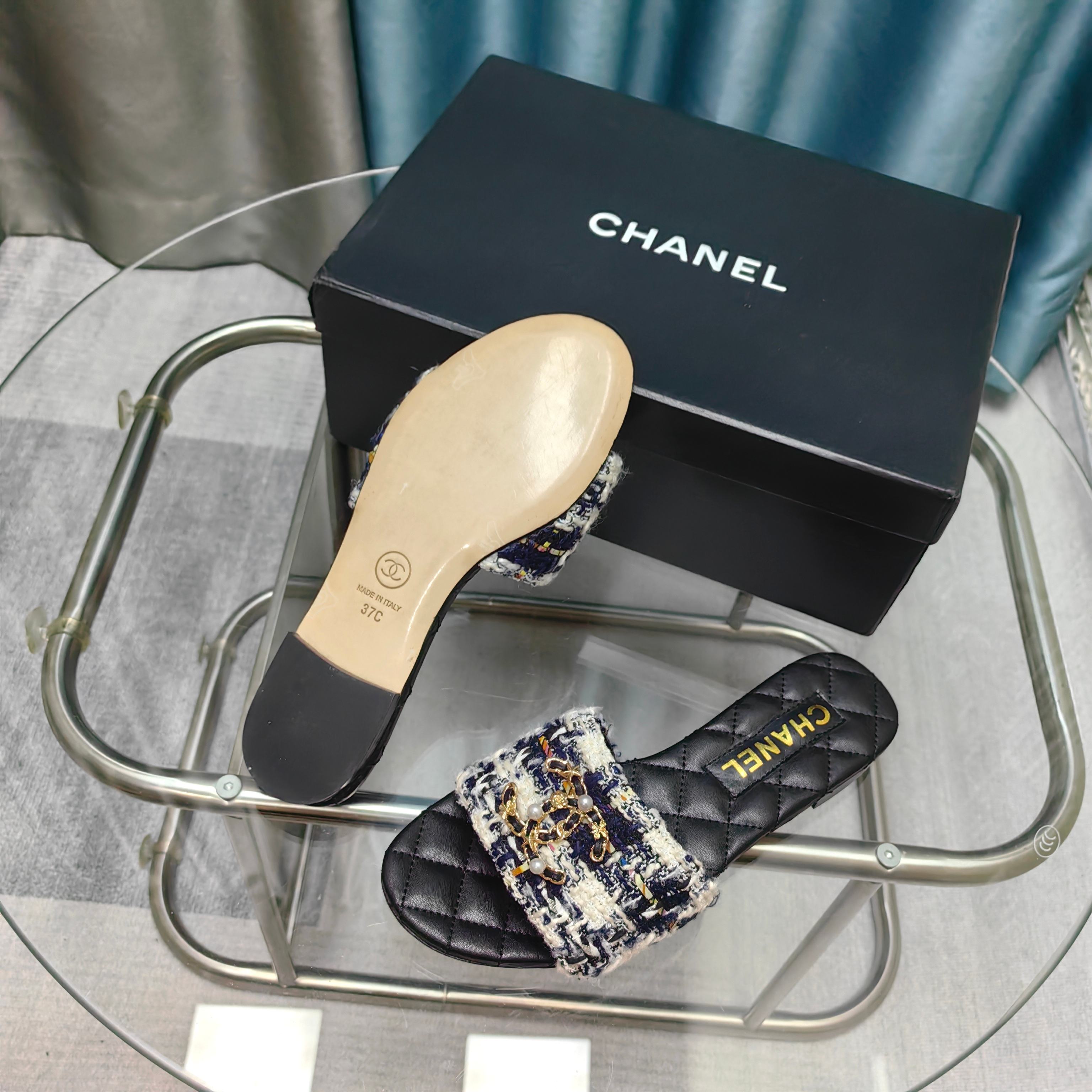 CC 25 Mules Flat Pearl Cord and Lambskin 270770