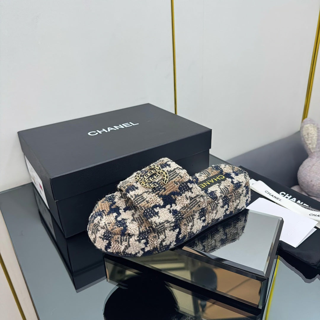 CC 25S Dad Sandal White Black Tweed Calfskin