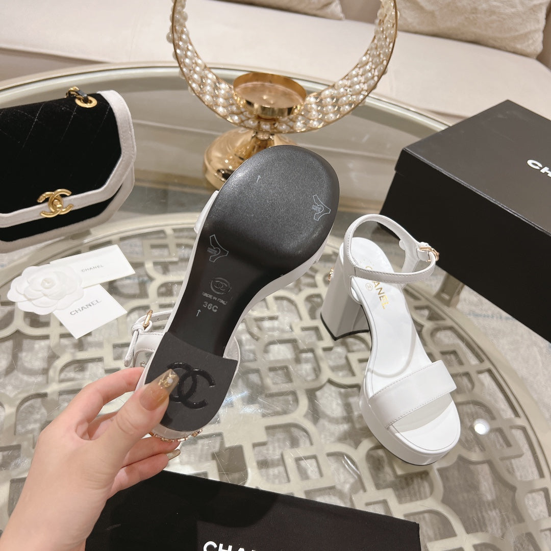 CC 25C 5CM Mid Heed Sandals White Italian Leather 213316