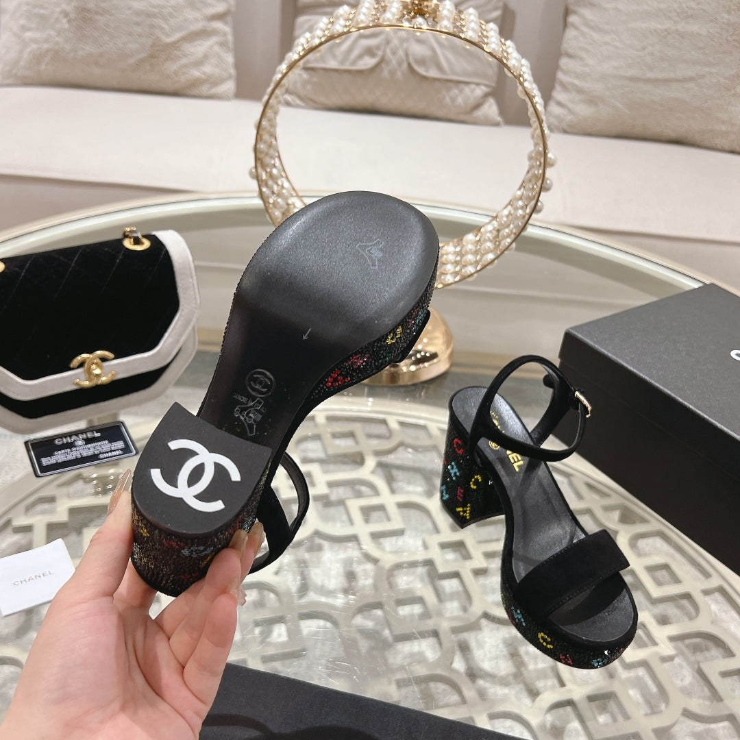 CC 25C 10CM Mid Heed Sandals Black Suede 213328