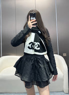 CC Scarf 180 CM In Black Mix White Cashmere And Wool Mix Silk 407255